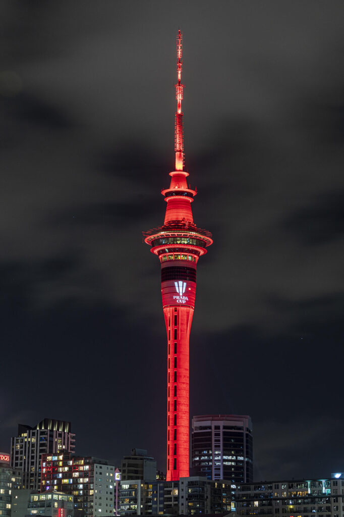 Da domani, alla vigilia di ogni giorno di regata della PRADA Cup, la Sky Tower di Auckland sarà illuminata di rosso, con la proiezione di diverse animazioni, tutte da scoprire, del logo PRADA Cup, a segnalare lo svolgimento delle regate di selezione dei Challenger della della 36^ America’s Cup presented by PRADA.