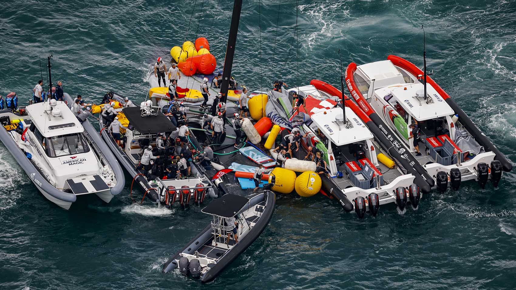 Dopo l’incidente America’s Cup Event, il COR36 e tutti team hanno collaborato per riportare la barca in galleggiamento e trainarla in porto dimostrando grande solidarietà e valori sportivi. Tutti i membri dell’equipaggio sono stati rapidamente aiutati dal personale di assistenza in acqua e dichiarati fuori pericolo.