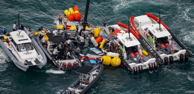 Prada Cup, le immagini del recupero di Patriot dopo la scuffia
