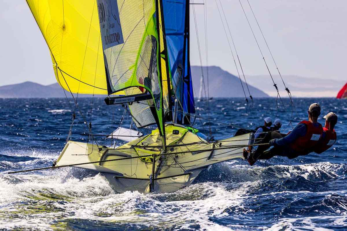 Penultimo giorno di regate a Lanzarote (Canarie), ultima tappa di Qualifica Olimpica con un solo posto nazione per le classi 49er, 49er FX e Nacra 17. Una giornata di vento medio-forte e onda, tre prove veloci per tutte le flotte e classifiche con un volto ben definito.