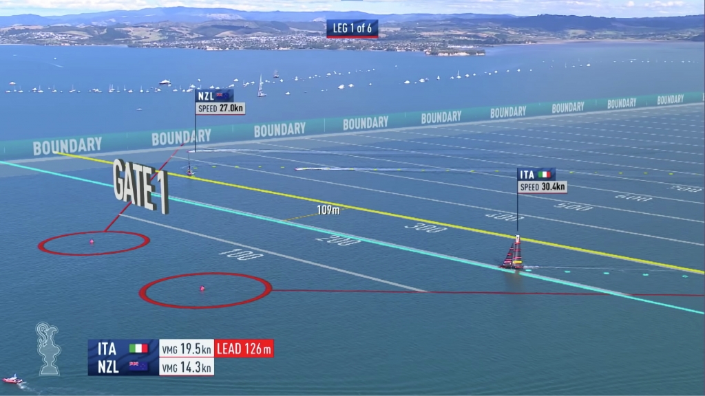 Ciò che lo rende un software altamente sofisticato, sono le informazioni relative al comportamento della barca in virata e strambata (“rate of turn”), che consentono di conoscere in maniera estremamente precisa la traiettoria seguita e la velocità in ogni punto della manovra, in modo da preveder con estrema accuratezza i tempi necessari a raggiungere le boe dei gate, le layline e i boundary, ovvero i confini virtuali che delimitano il campo di regata e che non devono essere oltrepassati.