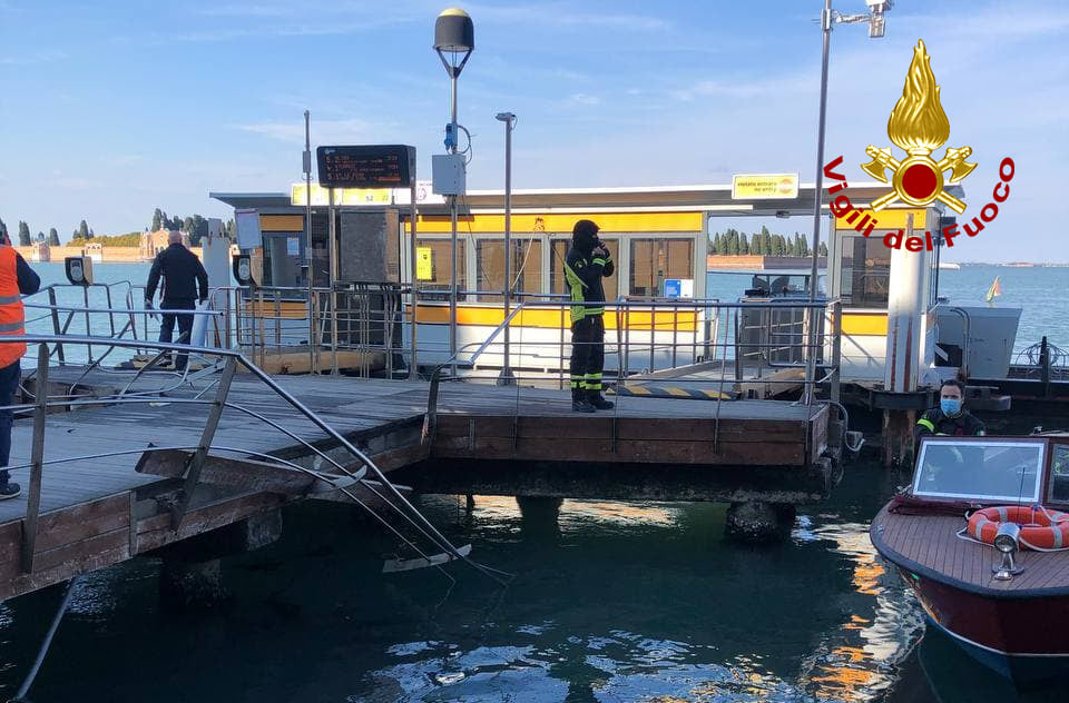 Danneggiate invece in modo serio un’imbarcazione ormeggiata nei pressi e la balaustra del pontile. Lievi invece i danni, ad una prima verifica, subìti dal mezzo di soccorso.