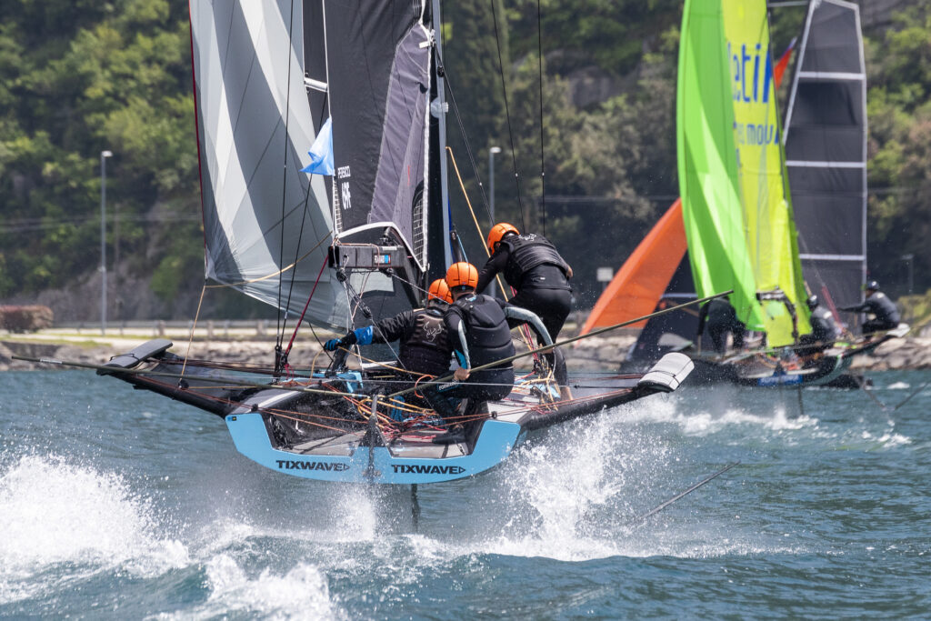 Seconda settimana più soddisfacente dal punto di vista meteorologico, con le classiche condizioni ventose di Malcesine e del Lago di Garda. Sabato il giorno con più vento, dove gli equipaggi più giovani sono stati messi a dura prova, regatando con vento costante tra i 16 e i 20 nodi.