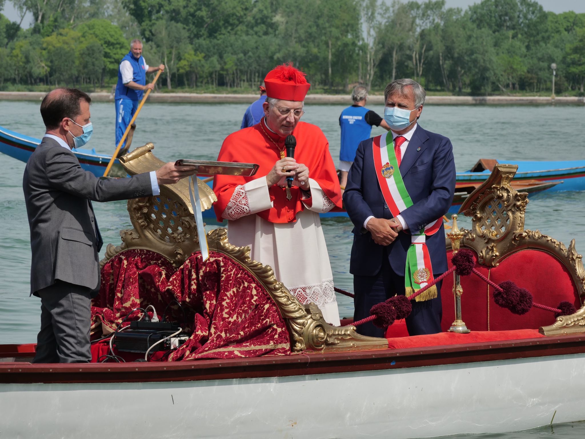 Alle ore 10.30 circa il sindaco di Venezia Luigi Brugnaro, il patriarca Francesco Moraglia e il contrammiraglio Andrea Romani, comandante dell’Istituto Studi militari marittimi e del Presidio Militare di Venezia, hanno celebrato il rito dello sposalizio del mare con il lancio dell’anello dogale da parte del primo cittadino: “Noi ti sposiamo o mare in segno di vero e perpetuo dominio”, è stata la frase di rito proferita dal primo cittadino. Parole e gesti accompagnati dall’alzaremi e dalle note dell’inno di San Marco.