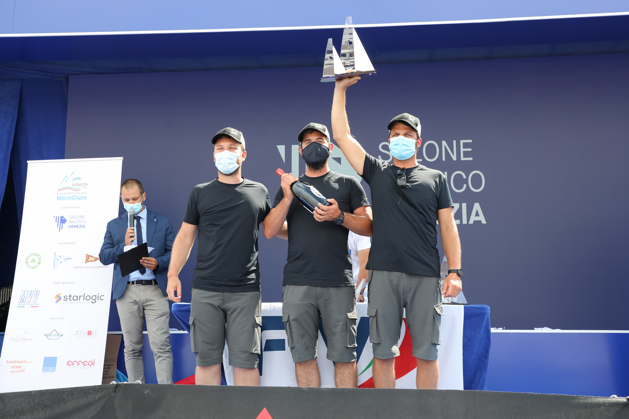 Premiati i primi tre classificati al Trofeo Salone Nautico Venezia 2021 – campionato italiano di Micro Class, evento organizzato da FIV Federazione Italiana Vela, Diporto Velico Veneziano, Circolo della Vela Mestre, Canottieri Mestre.Presenti alla cerimonia il Consigliere Comunale Matteo Senno e il direttore operativo del Salone Nautico, Fabrizio D’Oria.