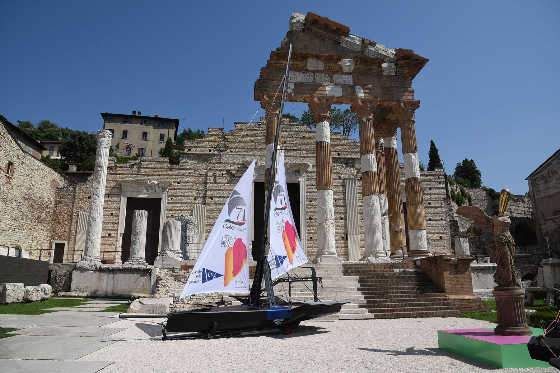 velica che si svolge dal 1951 su iniziativa del Circolo Vela Gargnano, sotto l’Egida della Federazione Italiana Vela, Patronato Regione Lombardia, e che si è consolidata nel tempo come una delle più celebri regate europee in grado di accogliere negli ultimi anni centinaia di barche tra le migliori del continente. La 71ma Centomiglia si terrà il 4 e il 5 settembre 2021 con partenza (ore 8.30) dal porto di Bogliaco, risalita fino a Campione, giro della boa di Capo Reamol/Limone, discesa fino a Bogliaco e poi fino a Bardolino con ritorno a Gargnano. La presentazione ufficiale della gara è stata ospitata straordinariamente a Brescia in una data non casuale. Il 20 luglio è infatti il giorno in cui ricorre il ritrovamento della Vittoria Alata di Brescia, avvenuto nel 1826, 195 anni fa, in una intercapedine del Capitolium, durante gli scavi archeologici condotti nell’area dai membri dell’Ateneo di Scienze, Lettere e Arti di Brescia. Probabilmente occultata, insieme a sei teste di età imperiale e a centinaia di altri reperti in bronzo, per preservarla da eventuali distruzioni, la scultura, oggi simbolo della città di Brescia, è una delle più straordinarie e importanti statue di epoca romana giunte fino a noi. Amata da Giosuè Carducci che la celebrò nell’ode Alla Vittoria, ammirata da Gabriele d’Annunzio e da Napoleone III che ne vollero una copia, è possibile oggi ammirare la Vittoria Alata nella cella orientale del Capitolium, all’interno di Brixia. Parco archeologico di Brescia romana, in un allestimento museale progettato dall’architetto spagnolo Juan Navarro Baldeweg (Santander, 1939).