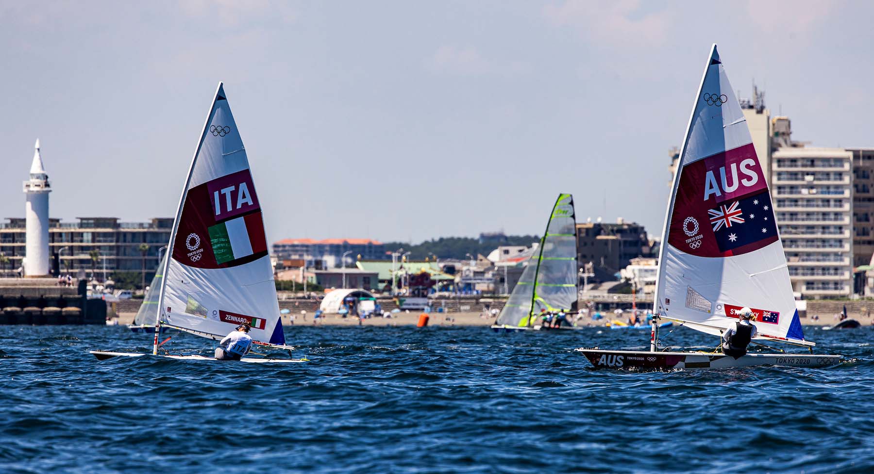 La prima giornata di regate vede esordire il windsurf RS:X maschile e femminile sul campo di regata più vicino al porto e alla costa: “Enoshima”, e i singoli Laser maschile e Laser Radial femminile nel campo “Kamakura”.