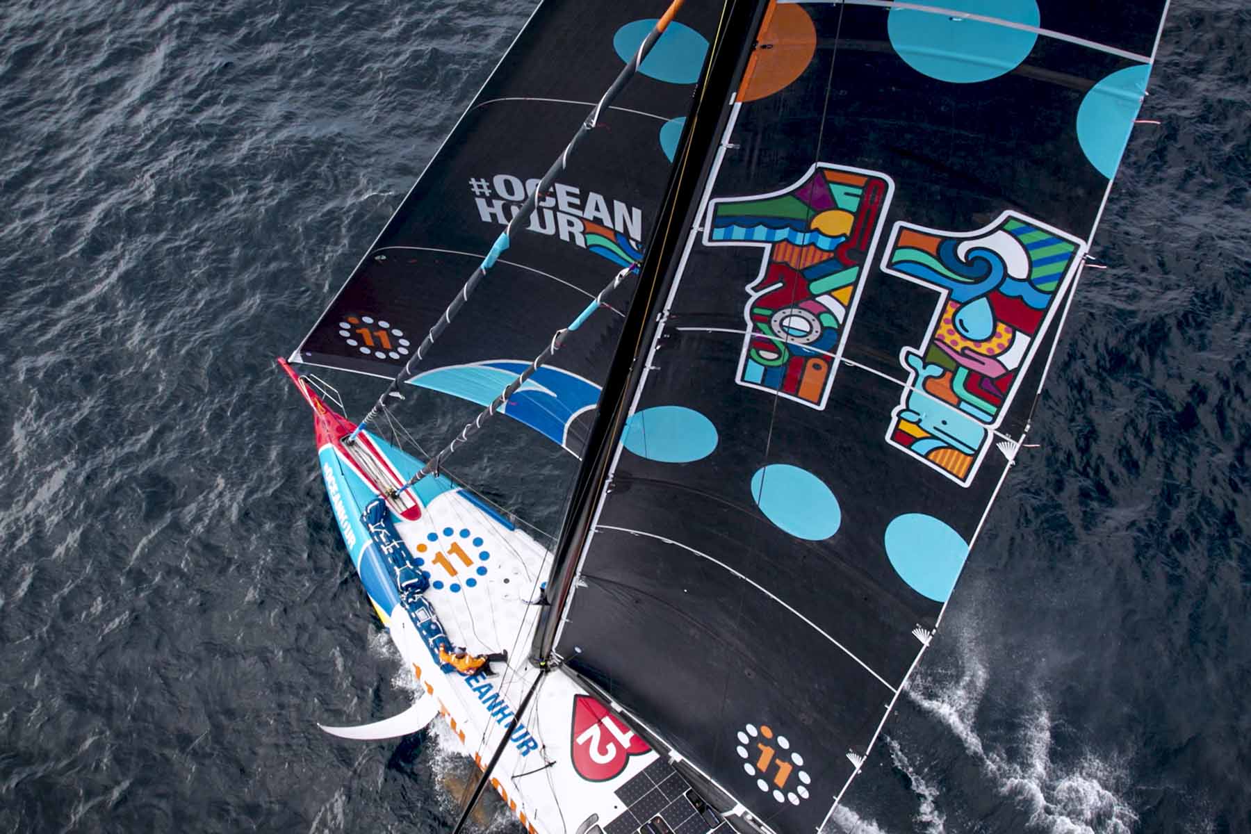 Il team 11th Hour Racing Team ha collaborato con Van Orton Design per trasformare la sua barca da regata in un’opera d’arte che porti nel mondo il messaggio della salvaguardia degli oceani