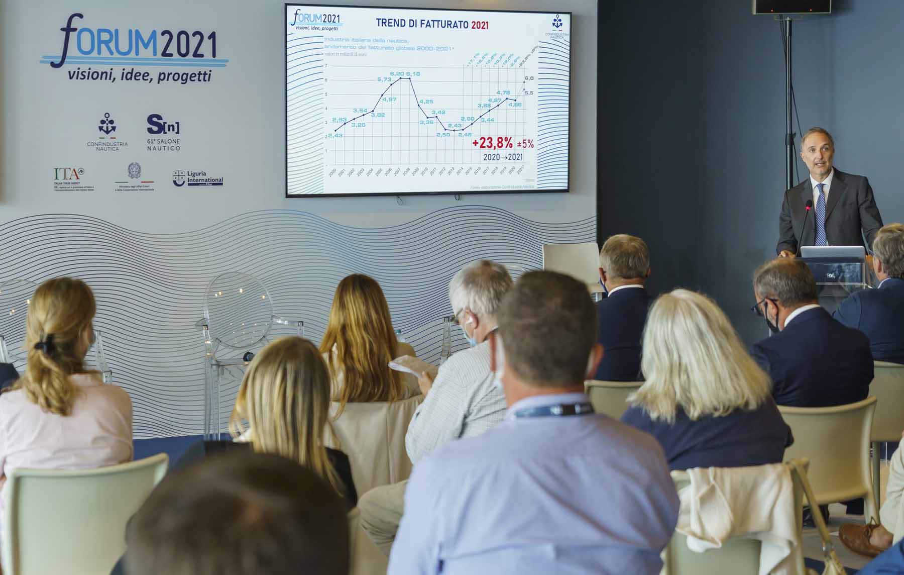 La crescita va molto oltre il rimbalzo post lockdown registrato dall’industria italiana. Determinanti vari fattori, fra cui la crescita molto significativa dell’export della cantieristica che, nell’anno scorrevole al 30 giugno 2021, ha raggiunto il massimo valore storico di 2,8 miliardi di euro, i portafogli ordini dei cantieri italiani di superyacht, che per molti operatori coprono il prossimo triennio, e l’ottima performance dei comparti dell’accessoristica nautica e dei motori marini.