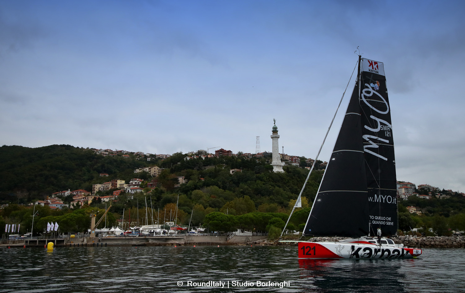 Ma riavvolgiamo il nastro: dopo la partenza di giovedì 16 settembre, i cinque scafi sono incappati in una sventolata da Sud che ha messo subito in chiaro il fatto che non sarebbe stata una crociera di piacere. Mentre il Maxi di Carlo Alberini si è velocemente allungato sul resto della flotta, il gruppo dei Class40 e il First 44 Argo hanno percorso le prime 500 miglia verso lo Stretto di Messina in una danza che a momenti li vedeva separati e poi vicinissimi. Al primo gate di Messina, infatti, dopo una lenta discesa del Tirreno Meridionale, i tre Class40 hanno passato il controllo a pochi minuti – se non secondi, come i primi due – l’uno dall’altro. Il First 44 Argo in questa fase ha perso miglia importanti, rallentato da venti leggeri e le correnti contrarie dello stretto. E mentre Pendragon ha iniziato a macinare miglia a medie impressionanti, grazie ai venti sostenuti del Mar Ionio, la flotta degli inseguitori si è separata nella seconda tratta del percorso, quella che collega Messina al secondo gate della regata, il capo di Santa Maria di Leuca. Qui il Class40 Ediliziacrobatica ha dovuto fermarsi per circa un’ora per un rifornimento d’acqua, perdendo irrimediabilmente miglia e tempo prezioso nei confronti dei suoi diretti avversari che, lasciata la Puglia, hanno messo la prua sulle coste dell’Albania per iniziare la risalita dell’Adriatico. Proprio l’Adriatico si è rivelato poi un campo molto difficile, con una burrasca che ha investito la flotta per circa 30 ore e ha costretto i concorrenti a navigare di bolina praticamente fino alle coste dell’Istria. E mentre Pendragon ha conquistato velocissimo alla linea d’arrivo (il 23 settembre alle 11 del mattino), gli altri hanno navigato lungo la parte est del Mar Adriatico per fare il loro arrivo tra le 7 del 24 e le 8 del mattino successivo. Primo tra i Class40, Karnak di Stefano Raspadori con Alberto Bona e Andrea Caracci. Dietro di loro Kika Green Challenge di Cristiano Verardo con Cecilia Zorzi e Pietro Luciani e, terzo arrivato, Ediliziacrobatica di Ernesto Moresino con Francesco Farci e Lorenzo Meroni. Infine, dopo 9gg 10h 41m 56s, alle 3:41 di domenica notte, il First 44.7 Argo di Luciano Manfredi ha tagliato la linea d’arrivo a Barcola dopo una lunga navigazione che lo ha portato a Trieste. Con un’età complessiva di 213 anni in quattro e varie vicissitudini – tra cui il guasto dell’elettronica di bordo – i marinai di Argo hanno compiuto l’impresa di arrivare davanti al Maxi Pendragon in tempo compensato e aggiudicarsi così la vittoria in IRC.