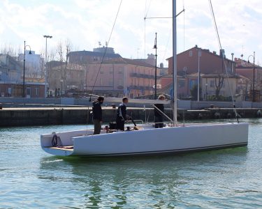 Costruita in Adriatico la barca è stata portata in Tirreno per partecipare alle Regates Royal e Voiles de St Tropez prima di essere trasferita in Spagna, via mare e con a bordo l’armatore, navigando un totale di 500 miglia in meno di una settimana. E’ stata una prova importante, che afferma le doti marine di questo dieci metri.