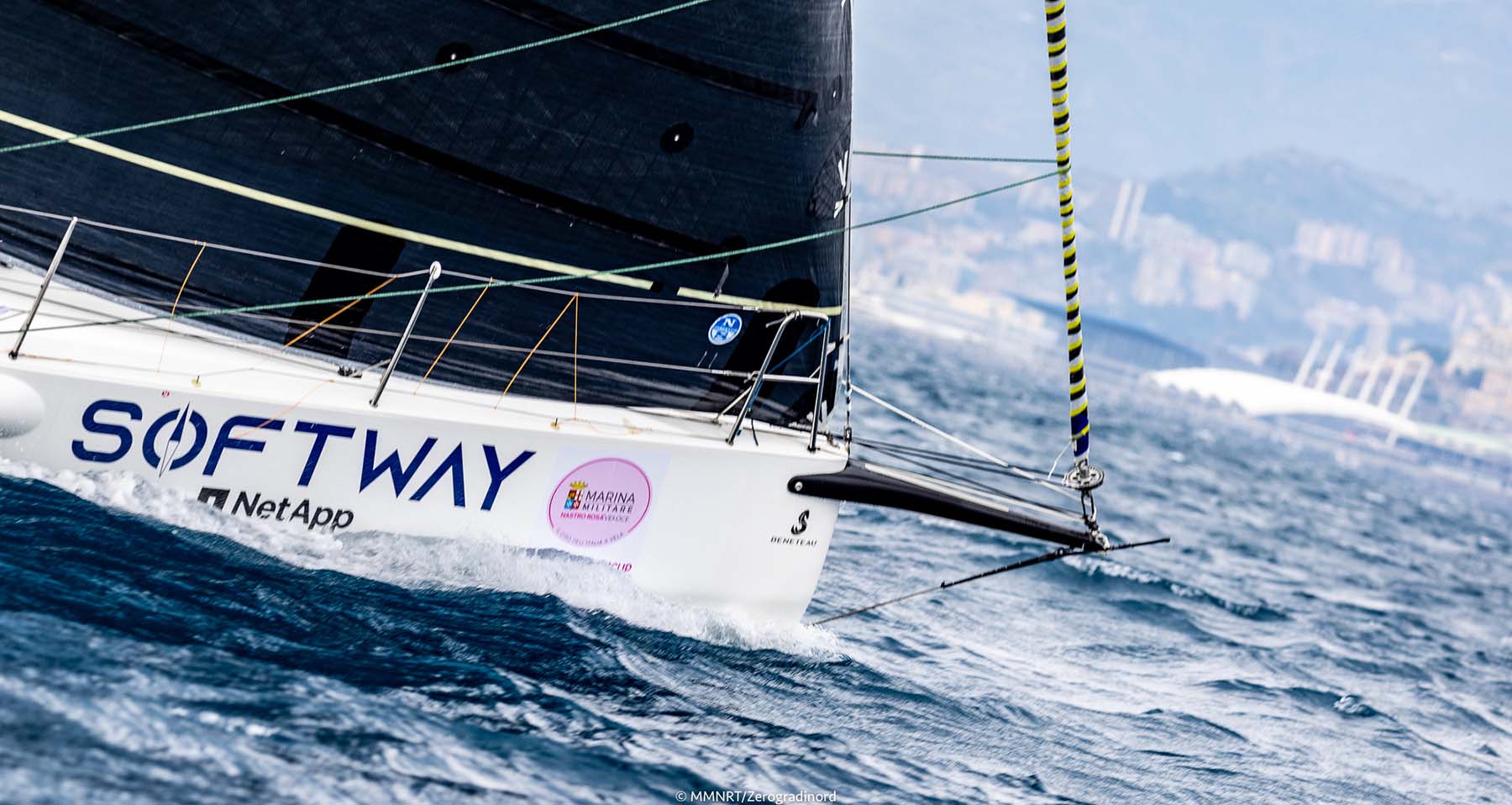 Team Softway, che nel corso della regata si è sempre mantenuto nelle posizioni di vertice e ha recuperato circa 40 miglia di svantaggio rispetto al binomio Zorzi-Torresani nell’approccio a Capo Passero completando poi il sorpasso durante la risalita del Tirreno, si è presentato a Genova alle 13.39, al termine di una rapida navigazione alle portanti tra Amalfi e il traguardo.