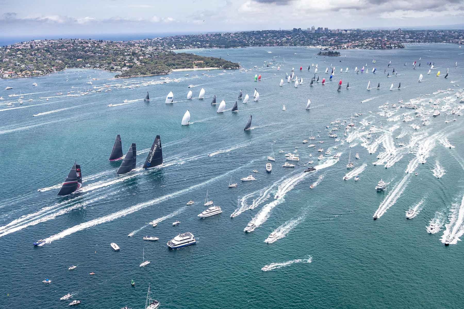 Altrettanto avvincente è stata la regata per la line honours, con tre maxi 100 piedi (30,5 m) che hanno combattuto virtualmente per la lunghezza del percorso di 628 miglia nautiche. SHK Scallywag 100 ha condotto fuori dal porto, ma un problema di gestione della vela ha lasciato sfuggire le sue rivali. LawConnect ha poi scambiato il vantaggio con Black Jack, fino a quando il monegasco di Peter Harburg l’equipaggio australiano ha agito in modo decisivo con il vento leggero per costruire un vantaggio che è sopravvissuto a una deriva al cardiopalma sul fiume Derwent fino a Hobart.