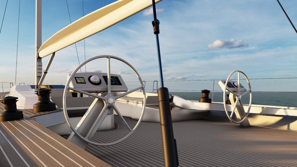 Sarà uno scafo tecnologicamente avanzato, con fibre ottiche nella laminazione, per la verifica dello scafo in ogni punto programmato, grazie alla collaborazione con B&G, Volvo e Allspar e alcuni tra centri di ricerca più evoluti nel settore della laminazione a infusione.