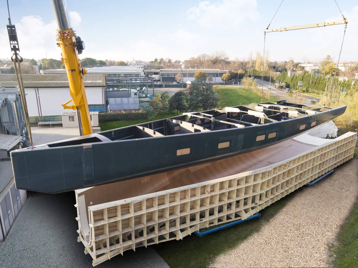 L’ultima creazione a vela full custom Wally ha girato un’importante boa del processo costruttivo con il distaccamento della scocca dallo stampo: l’elegante scafo in carbonio del nuovo cruiser-racer di 101 piedi è stato estratto dallo stampo femmina. Si tratta del quarto Wally commissionato da un armatore esperto e ispirato al design dell’emblematica classe Wallycento.