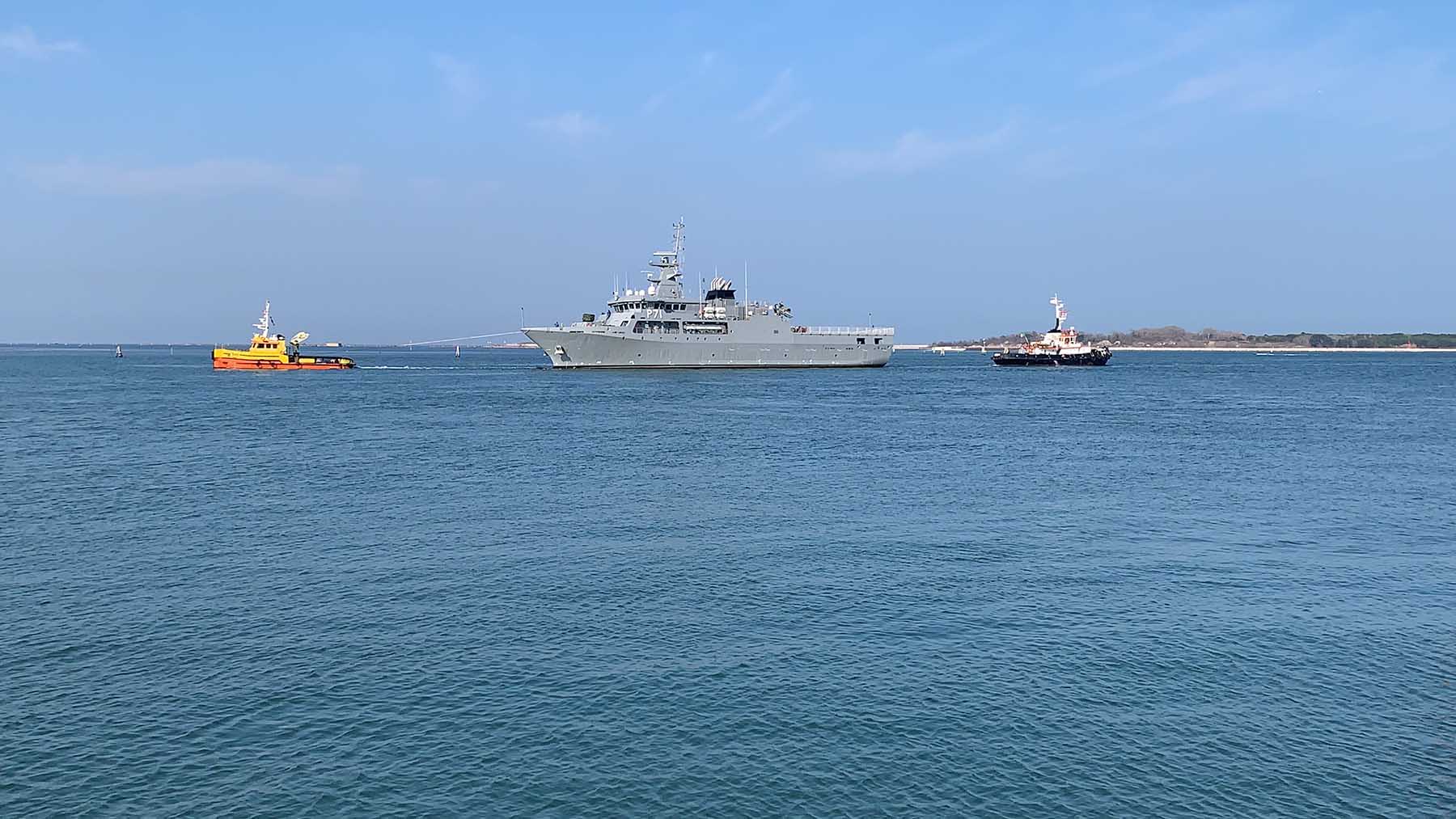 Sta destando non poca curiosità, in queste ore, l’approdo a Chioggia nella zona dell’ex Marittima ai Saloni, di una nave militare. Nulla a che fare con la guerra in Ucraina, ma solo una sosta tecnica per permettere alle maestranze del Cantiere Navale Vittoria di completare l’allestimento.