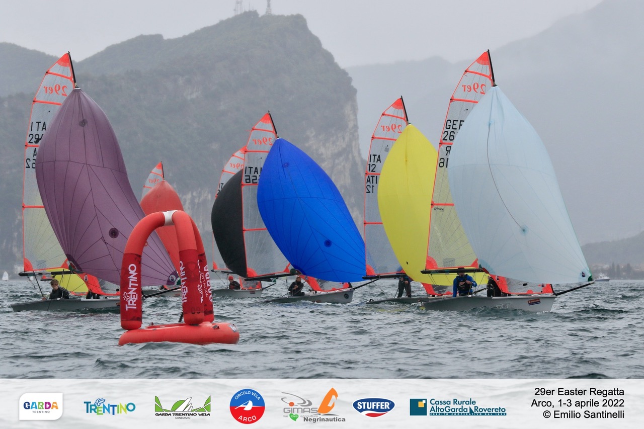 Avvio di stagione sportiva per il Circolo Vela Arco all’insegna del maltempo, ma non del mancato avvio di regate! Dopo aver assaggiato per tutta la settimana scorsa la primavera, il colpo di coda dell’inverno è arrivato proprio in concomitanza della prima regata 2022 organizzata dal Circolo Vela Arco, la “29er Easter Regatta”, manifestazione giovanile in programma da venerdì 1 a domenica 3 aprile, con la partecipazione di 59 equipaggi provenienti da 6 nazioni.
