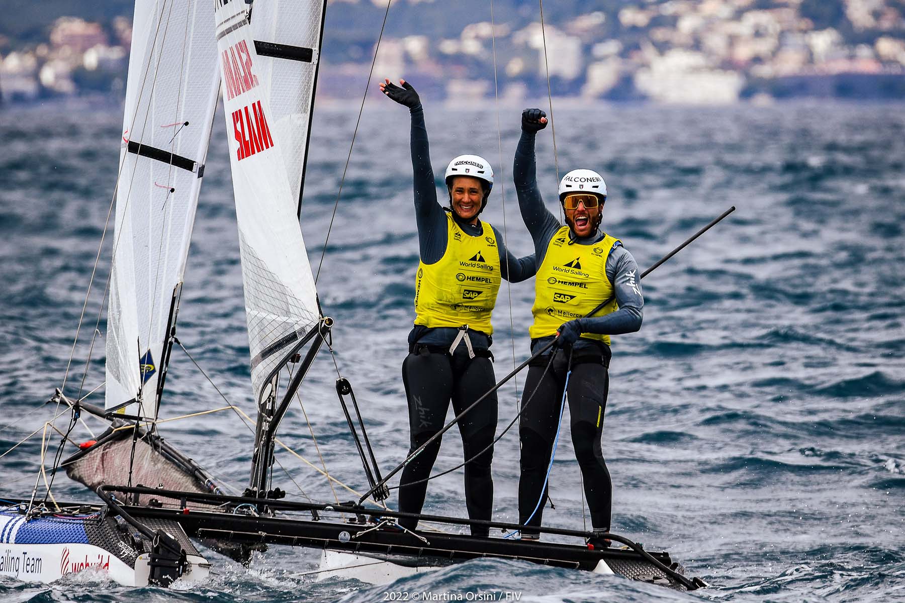Ruggero Tita e Caterina Banti: “Siamo molto contenti di avere vinto questa regata visto che erano due anni che non venivamo a Palma. Un motivo in più di soddisfazione è avere vinto anche il trofeo, per noi questa è la prima volta. È stata una settimana sicuramente impegnativa, ma con condizioni per noi ottimali: sono state le nostre condizioni e siamo riusciti ad adattarci al meglio al nuovo sistema di timoni che era una grande scommessa, visto che ci siamo allenati con questo solo tre giorni prima della regata. Abbiamo molta voglia di imparare e migliorarci e c’è tantissima soddisfazione per avere aperto la stagione – oltretutto dopo l’esperienza olimpica – con questo risultato.”