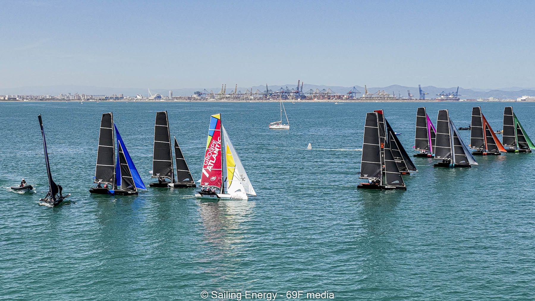 Si è concluso domenica 17 aprile il primo dei due eventi della 69F Cup – Valencia Mar Sailing Week, ospitata da Valencia Mar. Grande competizione, adrenalina e divertimento in acqua così come a terra tra i 10 equipaggi presenti. Le condizioni hanno consentito di disputare ben nove prove, se pur la maggior parte concentrate nella giornata di sabato 16, grazie alla classica termica di Valencia che ha permesso a tutti di volare sull’acqua con ogni andatura.