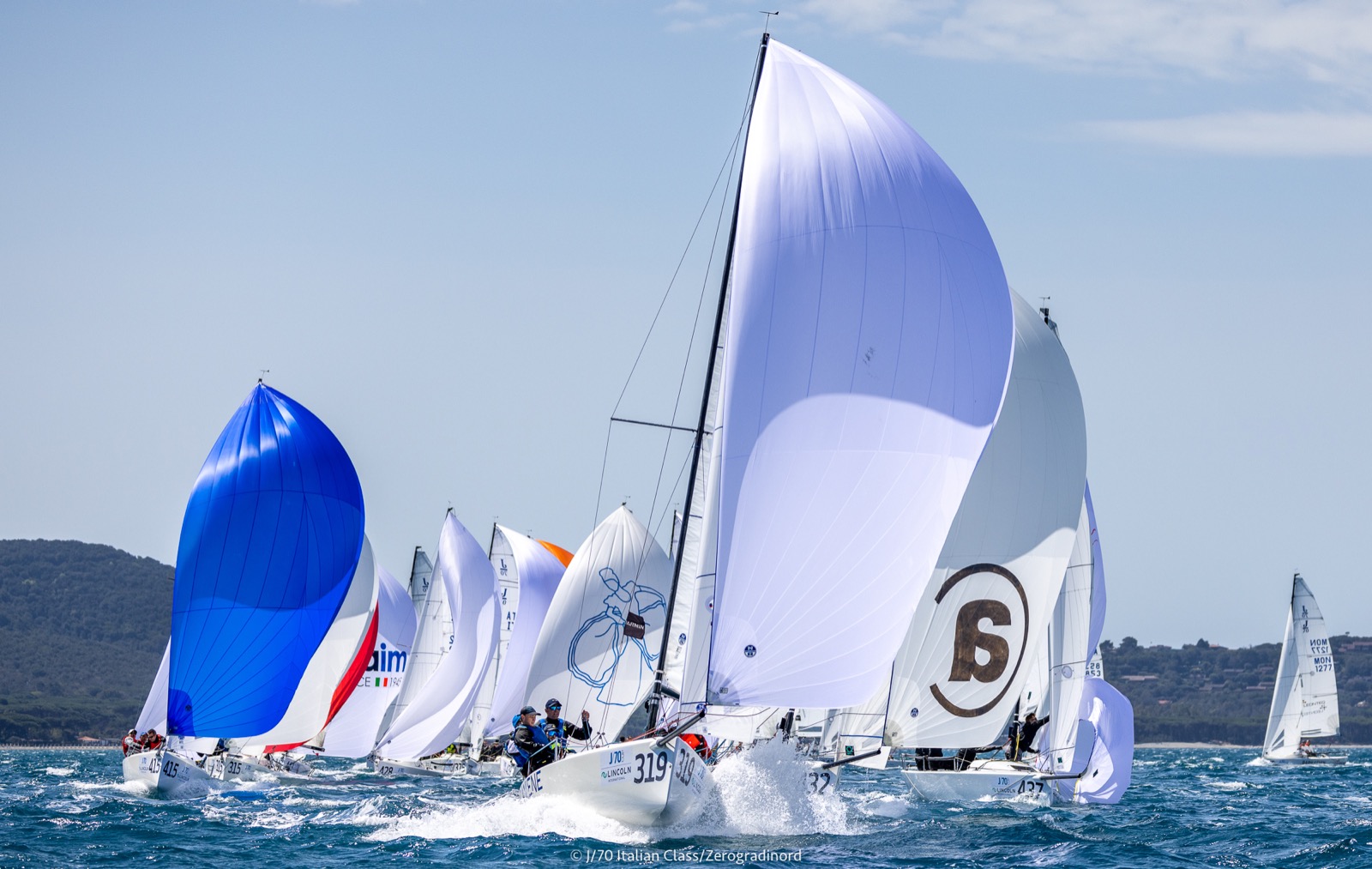 Oltre venti nodi di Scirocco, rafficato e in continuo aumento nella mattinata: il campo di regata di Punta Ala ha messo alla prova i quarantuno equipaggi partecipanti alla prima frazione della J/70 Cup 2022 con condizioni davvero impegnative, al punto che, dopo la prima prova di oggi, quarta della serie, il Comitato ha ritenuto opportuno rimandare in porto la flotta, in attesa di valutare l’evoluzione dello stato del vento e del mare. Vento che ha continuato ad aumentare, rendendo imprescindibile l’annullamento delle regate della giornata a metà pomeriggio.