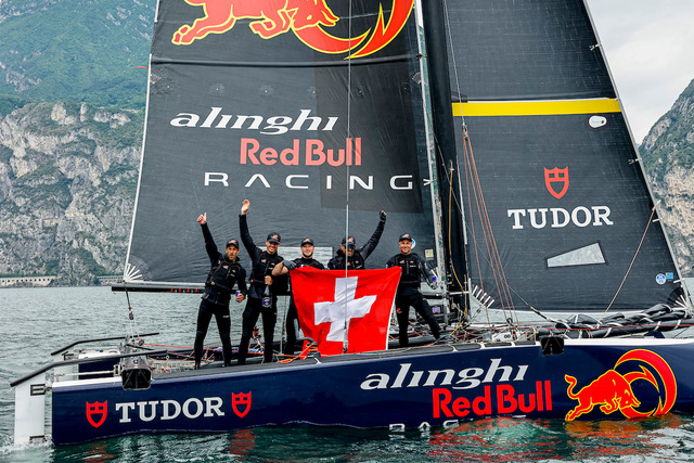 Profumo di Coppa America a Riva del Garda con la netta vittoria di Alinghi Red Bull racing -SUI 8- con skipper Arnaud Psarofaghis, l’unico membro – insieme a Mettraux confermato nel team Alinghi di Coppa America, alla prima tappa del Circuito GC32 dopo quattro giorni di regate ad alte velocità, anzi, velocità volanti, tornate sul Garda Trentino e alla Fraglia Vela Riva con i catamarani GC32, che hanno garantito momenti adrenalinici e momenti glamour con occasioni di pubbliche relazioni tra aziende sponsor e relative reti vendita.