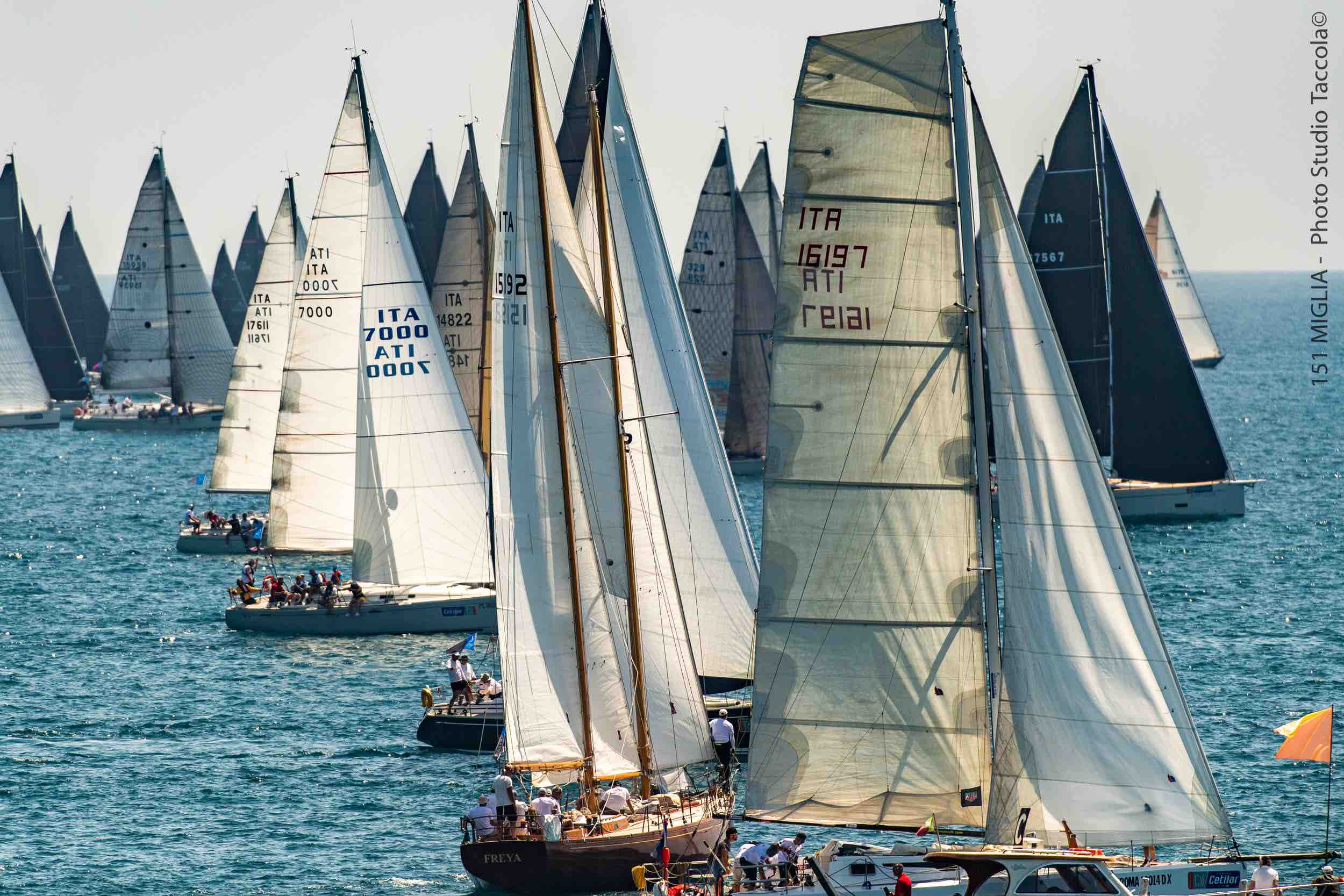 Uno spettacolo maestoso, la partenza della 13ma edizione della 151 Miglia-Trofeo Cetilar: ben 204 le barche, sulle 263 inizialmente iscritte, che alle due di oggi pomeriggio, al largo di Livorno, hanno dato vita all’appuntamento più importante, seguito e amato della vela d’altura in Mediterraneo, una regata che è già diventata un cult tra gli appassionati della materia.