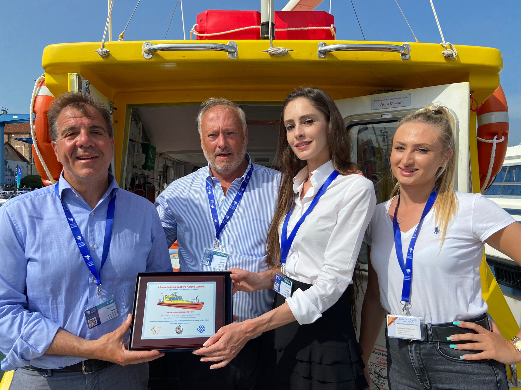 Il direttore operativo di Vela spa, Fabrizio D’Oria, ha ricevuto oggi una targa dal capitano Nicola Falconi come ringraziamento per aver avuto l’opportunità di esporre l’idroambulanza d’altura costiera Alpha Charlie all’interno del Salone Nautico Venezia.