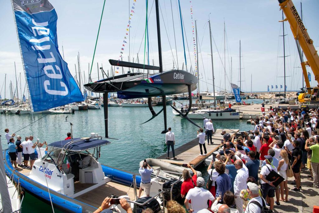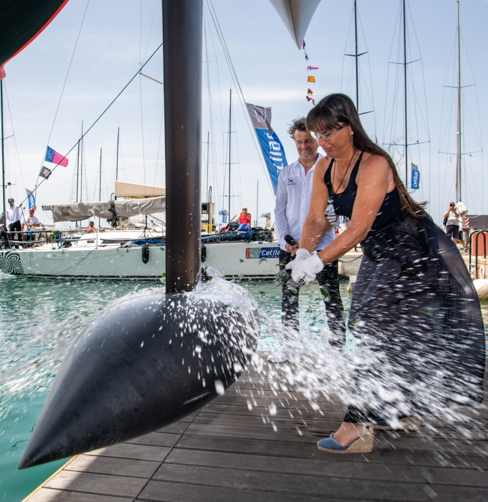 Dopo la doverosa benedizione e la presentazione di equipaggio e shore team, alle 14 la madrina del varo Luisa Cognetti, co-armatrice di FlyingNikka con il marito Roberto, ha rotto la bottiglia al primo colpo, dando il via ufficialmente all’avventura di questa barca super rivoluzionaria, che ha subito dato spettacolo nel corso di un’uscita al largo di Punta Ala.