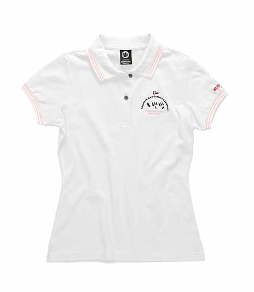 Come da tradizione si tratta della riedizione della polo Plenty in piquet di cotone del 1989 e sino ad oggi sempre presente nelle collezioni Murphy&Nye con continui aggiornamenti e attualizzazioni nella vestibilità e nella tipologia dei tessuti impiegati.È caratterizzata dalla doppia rigain contrasto di colore nel colletto e nelle maniche che riprende il motivo dei fregi e delle linee di galleggiamento degli scafie, forse proprio per questo, da sempre così apprezzata e distintiva da parte del pubblico dei velisti. Quest’anno, per la prima volta, verrà proposta in due varianti colore differenti per l’uomo e per la donna. Entrambe le versioni saranno grigio antracite con doppia riga acquamarina per l’uomo e rosa per la donna, mentre per Barcolana Classic in bianco con doppia riga acquamarina per l’uomo e rosa per la donna.