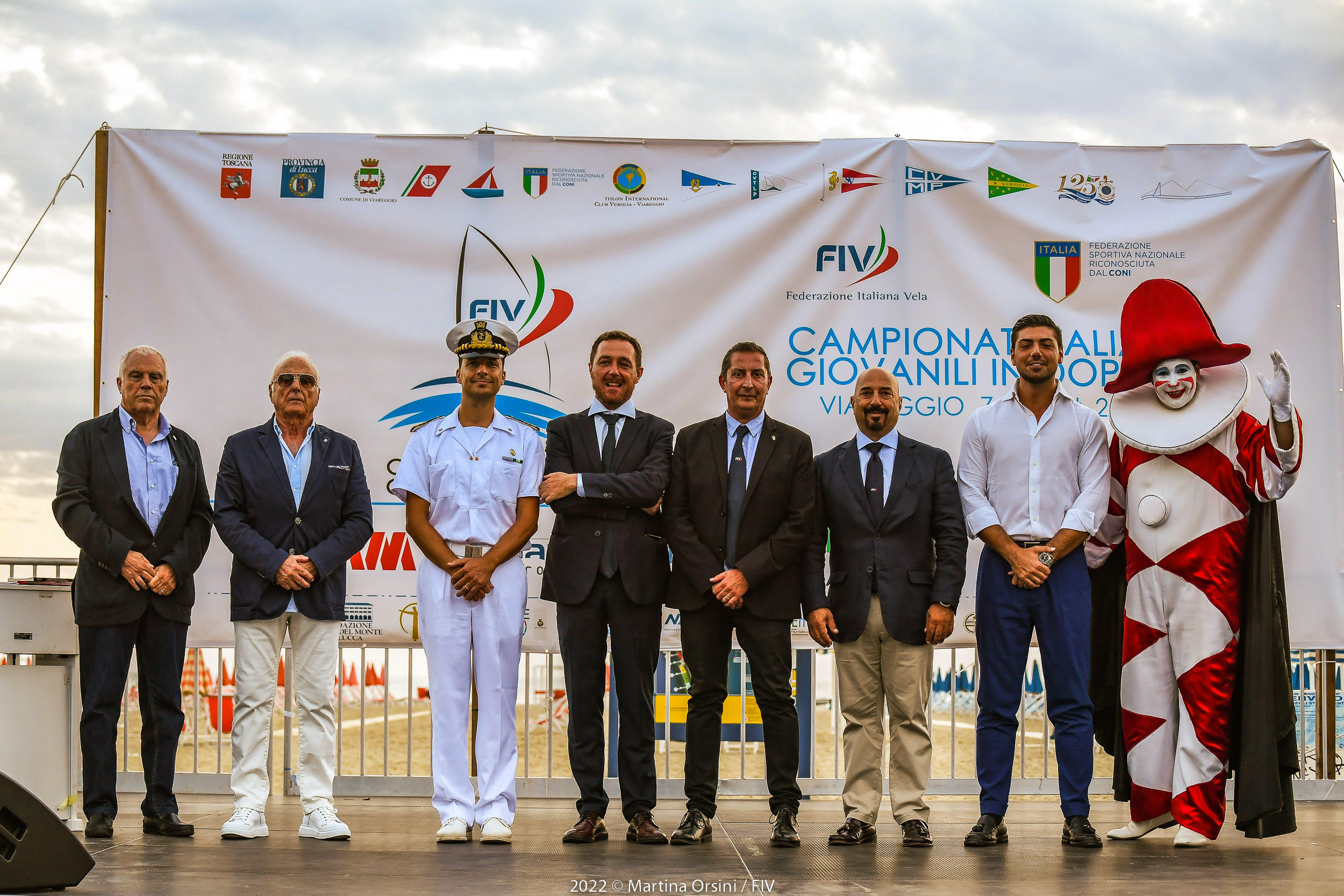 Con la coinvolgente cerimonia d’apertura in Belvedere della Maschere (davanti a Piazza Mazzini) ha preso ufficialmente il via l’edizione 2022 dei Campionati Italiani Giovanili in doppio, appuntamento clou della stagione velica giovanile che, sino a sabato 10 settembre, coinvolgerà 630 velisti dai 13 ai 17 anni accompagnati dai loro istruttori e da numerosi genitori: in questi giorni gli occhi degli appassionati di Vela – e non solo – saranno puntati su Viareggio che diventerà la Capitale della Vela giovanile. Bellissimo momento di sport e grande opportunità per l’intero territorio; questo importante evento, voluto fortemente dalla Federazione Italiana Vela, è organizzato dal Club Nautico Versilia, Circolo Velico Torre del Lago Puccini, Società Velica Viareggina, Circolo Velico Marina di Pietrasanta e Yachting Club Versilia con la collaborazione della Lega Navale Italiana sez. Viareggio e del Comitato Circoli Velici Versiliesi. La suggestiva cerimonia è iniziata con la sfilata di tutti i concorrenti che, dal Club Nautico Versilia e preceduti dall’Associazione Corpo Musicale G. Pardini di Torre del Lago, da Burlamacco (Carnevale Viareggio) e dalla mascotte FIV V-ITA, hanno raggiunto il palco posizionato nel centro della passeggiata viareggina.