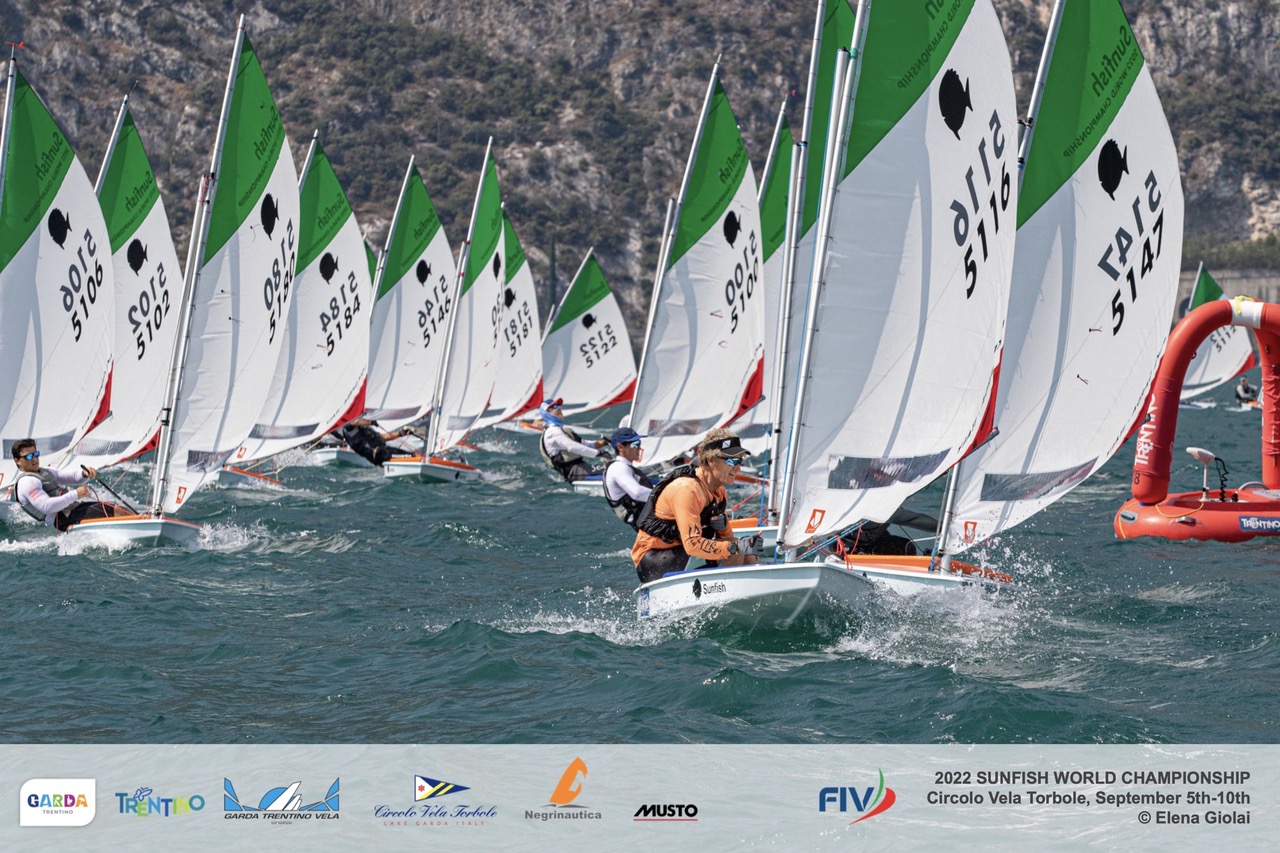 Sul Garda Trentino dieci regate in cinque giornate con vento vario da leggero a forte per assegnare i titoli mondiali della classe più diffusa al mondo, il Sunfish