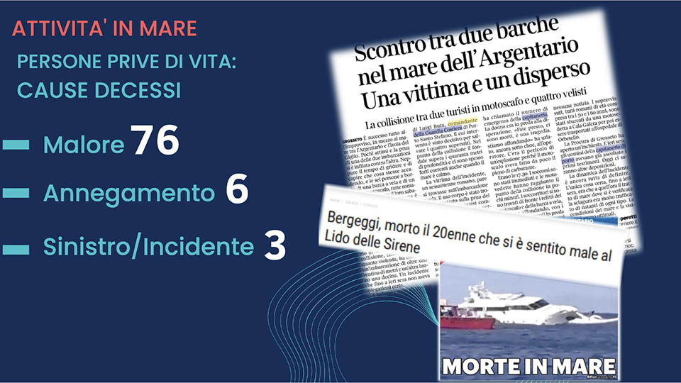 Questa tendenza positiva conferma la costante attività d’informazione e prevenzione, che affianca l’attività operativa, risultano essenziale per portare il cittadino a vivere il mare in sicurezza e nel rispetto dell’ambiente.