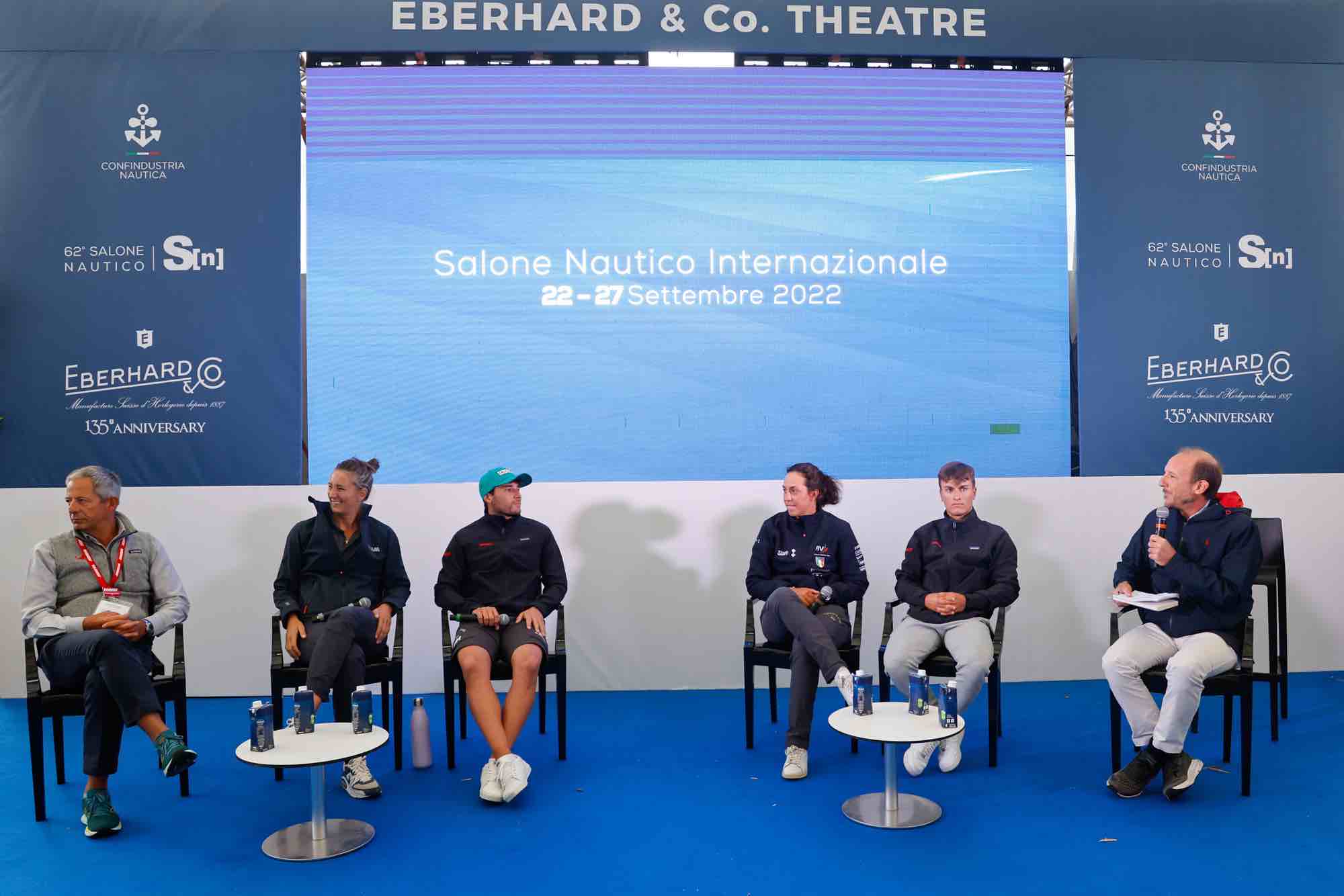 La vela olimpica protagonista assoluta oggi al Salone Nautico Internazionale di Genova, grazie alla presenza dei campioni della squadra nazionale azzurra all’Eberhard Theatre. Una vera festa, iniziata con la tavola rotonda organizzata da Harken, seguitissima, che ha avuto in Ruggero Tita e Caterina Marianna Banti, oro olimpico a Tokyo nella classe Nacra 17 (oltre a numerosi titoli Europei e Mondiali), gli attori principali. Sul palco, anche gli azzurri del 470 misto Marco Gradonie Alessandra Dubbini, Emanuele Cecchini, Commercial Director di Harken, e il Direttore di Vela&Motore Alberto Mariotti, moderatore dell’incontro. Molto interessanti e fuori dagli schemi le tematiche affrontate, uno sguardo inedito sulla vita dei campioni del mare, atleti di punta di un movimento in forte ascesa.