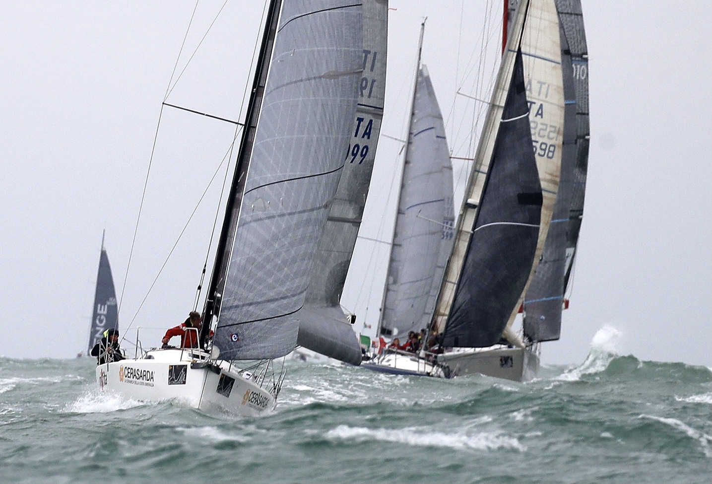 Una regata velocissima che si è chiusa in meno disette ore per la flotta in gara, che ha avuto vento intenso con raffiche fino a 30 nodi, per tutto il percorso da Caorle a Grado passando per Lignano.