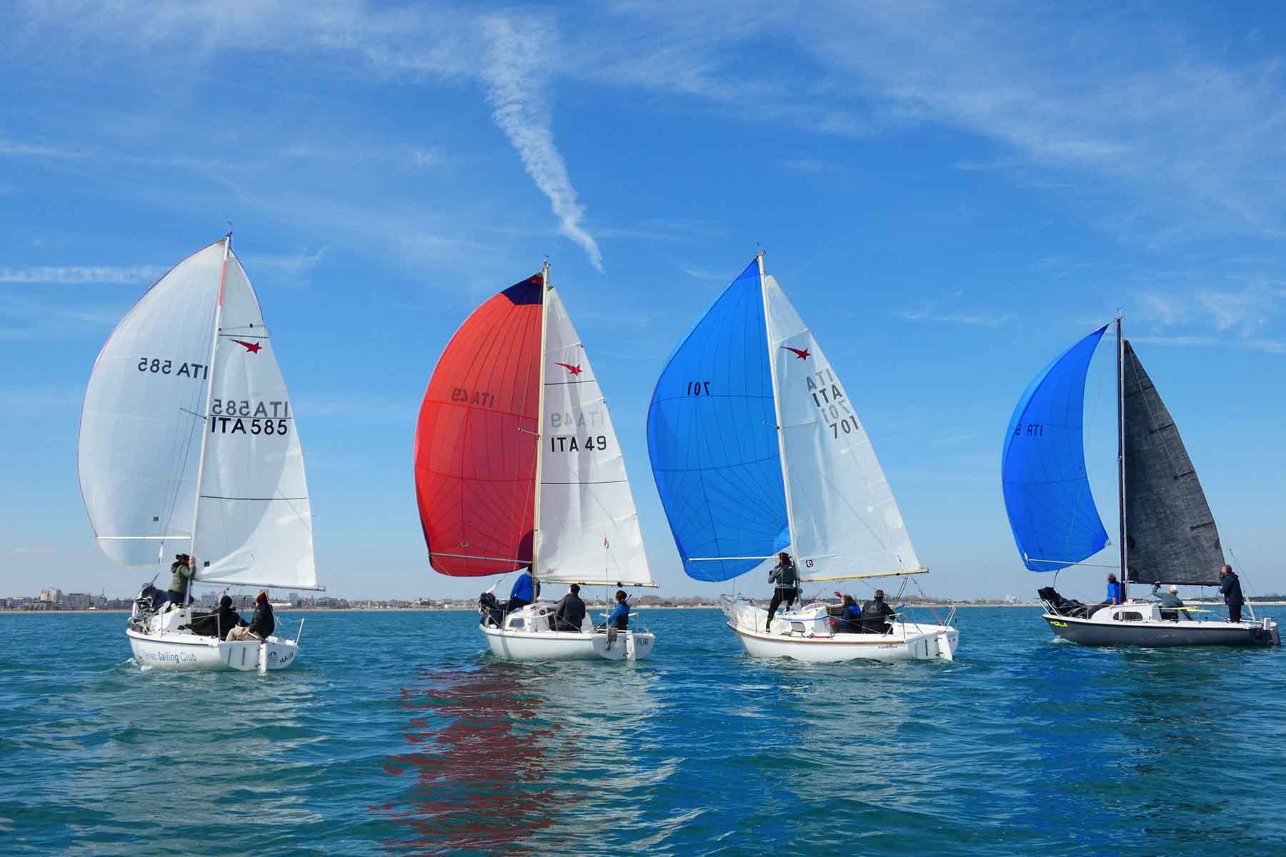 Ottima la risposta della flotta allo stage, con nove equipaggi che hanno provato una nuova e formativa esperienza. L’intenso weekend si è aperto con una serata introduttiva di teoria che si è svolta a Padova, presso la scuola nautica Capo Horn. Con molta attenzione ed interesse gli equipaggi partecipanti hanno seguito le prime indicazioni su come si prepara una regata e sull’importanza della comunicazione a bordo. L’indomani, grazie ad una brezza di 6- 7 nodi, condotti con la competenza e grande attenzione da parte del tutor, è iniziato il riscaldamento con una serie di esercizi e manovre ben precisi che hanno messo alla prova tutti gli equipaggi. Seguiti sul gommone da Carloia ogni equipaggio ha potuto verificare assetto e conduzione e grazie ai consigli dell’esperto correggere e provare a migliorare le manovre. Dopo il riscaldamento sono iniziate le prove tecniche di partenze, arrivi in boa, issate, ammainate e tutto ciò che serve a condurre una buona regata. Gli equipaggi sono entrati in modalità regata vera e propria cercando di confrontarsi al meglio, sempre sotto la guida esperta di Lorenzo.