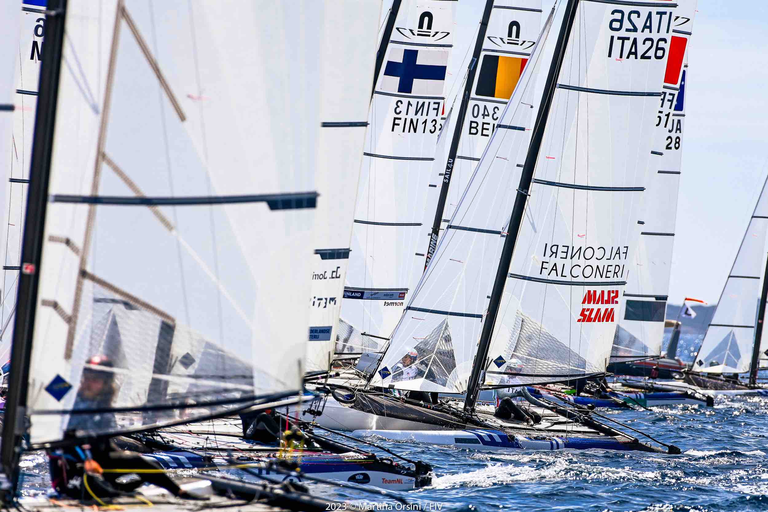 Tecnico FIV Gabrio Zandonà: “Prima giornata di finali molto combattuta. Berta-Festo sono partiti bene nella prima prova raccogliendo un buon piazzamento, purtroppo nelle due successive prove non hanno interpretato al meglio il campo anche con una partenza non ottimale per cui hanno perso qualche posto in classifica. Ferrari-Caruso hanno avuto una flessione nella seconda prova ma fatto bene nella prima e nella terza. Siamo ancora nel cuore della regata, domani sarà fondamentale dare il massimo.”