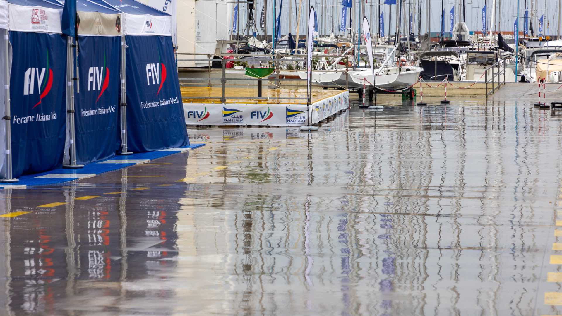Le condizioni meteo impraticabili fermano il Campionato Italiano Assoluto di Vela d’Altura Edison Next 2023 a Marina di Carrara. Nella terza giornata protagonista la pioggia, intensa dal mattino e fino al primo pomeriggio. Il vento è stato irregolare, prima forte e rafficato sui 15 nodi, poi mutevole e girevole, infine calato fino a bonaccia.