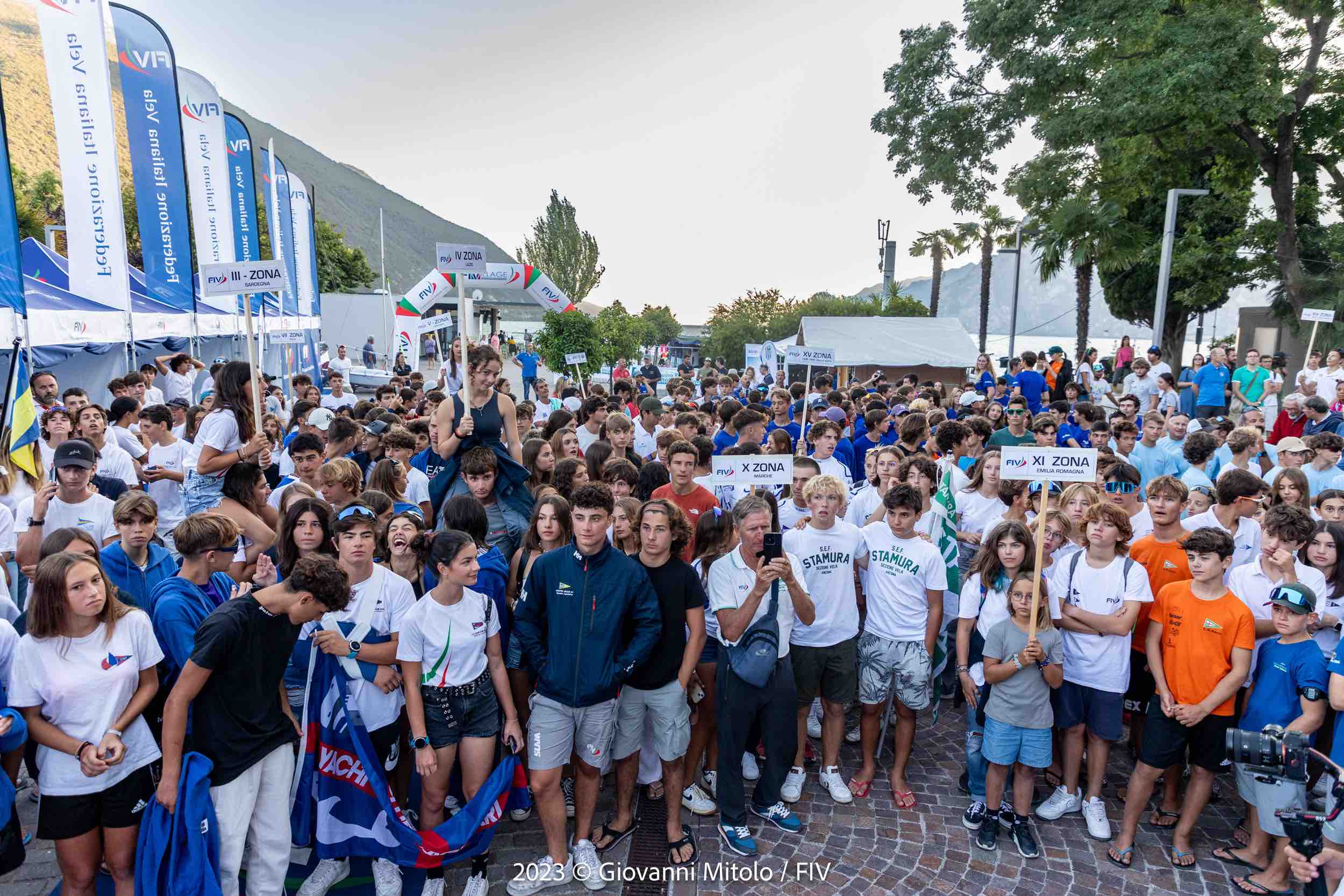 La cerimonia di apertura si è svolta al FIVillage allestito in Piazza Liezman a Torbole è statafestosa e partecipata, le squadre in rappresentanza delle 15 Zone FIV sono entrate nella piazza,hanno ascoltato il saluto del Presidente FIV Francesco Ettorre e delle istituzioni, a cominciare dalsindaco di Torbole Gianni Morandi, del Presidente di Garda Trentino Silvio Rigatti, del presidentedel consorzio di cinque circoli velici Garda Trentino Vela, Carlo Pompili (CV Arco) del quale fannoparte anche il CV Torbole, Circolo Surf Torbole, LNI Garda, Fraglia Vela Riva.