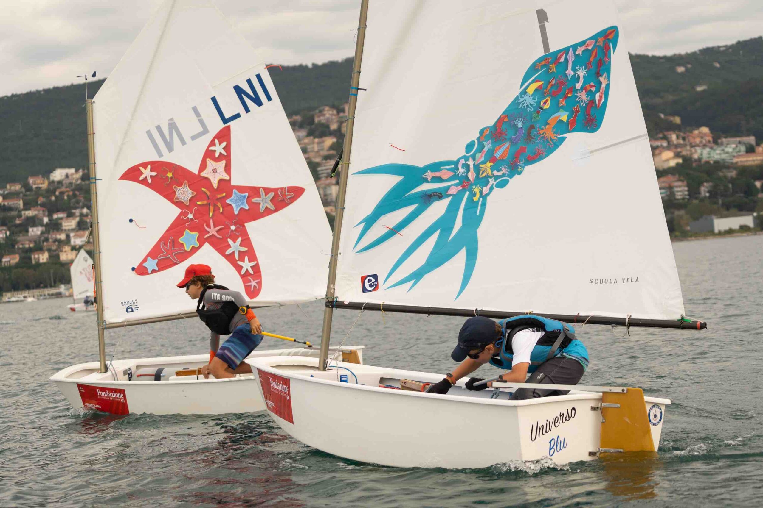 Tra i più grandi della Divisione A primo posto provvisorio con due primi e un quinto posto per Jesper Karlsen (Fraglia Vela Riva), seguito da Francesco Pilato (Circolo della Vela di Muggia) con un terzo, un secondo e un decimo posto e da Tommaso Geiger (Circolo della Vela di Muggia), oggi quinto, quarto e ottavo, mentre prima femmina è Guia Legisa (SVBG), seconda, quinta e ventesima. Tra i piccoli della Divisione B, primo posto per Luca Girani del Circolo Vela di Muggia, quarto, secondo e quinto, seguito da Carolina Longo (Laguna), oggi quinta, sesta e prima, che precede il compagno di squadra Francesco Frisan (SNPJ 9;4;2).