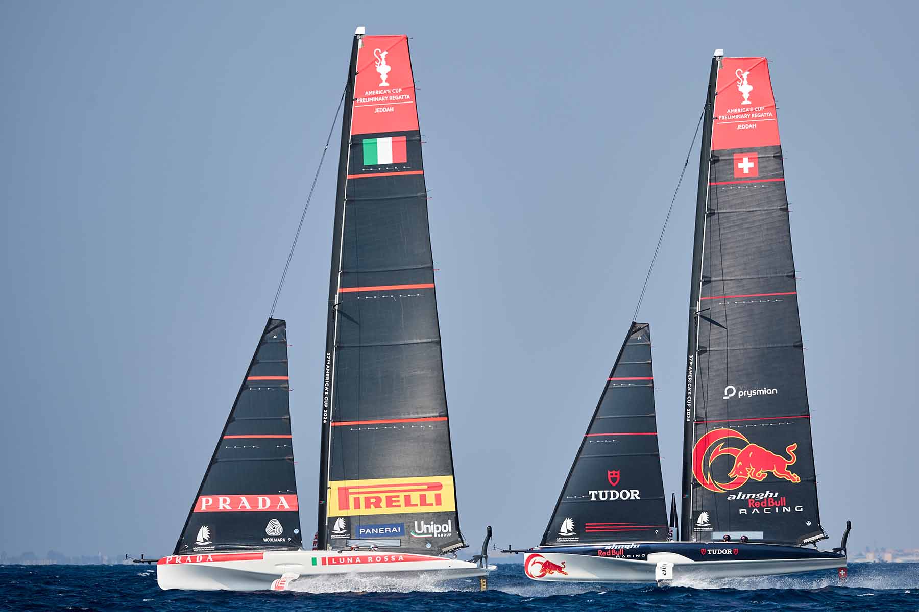 Per Alinghi Red Bull Racing si tratta di una strategia molto diversa e super-aggressiva, poiché gli svizzeri cercano di ottenere il massimo tempo in acqua con un varo in aprile fino all’inizio delle regate il 22 agosto 2024. Il varo anticipato dà agli svizzeri il tempo di sviluppare i sistemi di controllo cruciali e le preimpostazioni che potrebbero essere la chiave per vincere quella che sembra una Louis Vuitton Cup molto vicina per selezionare il Challenger.