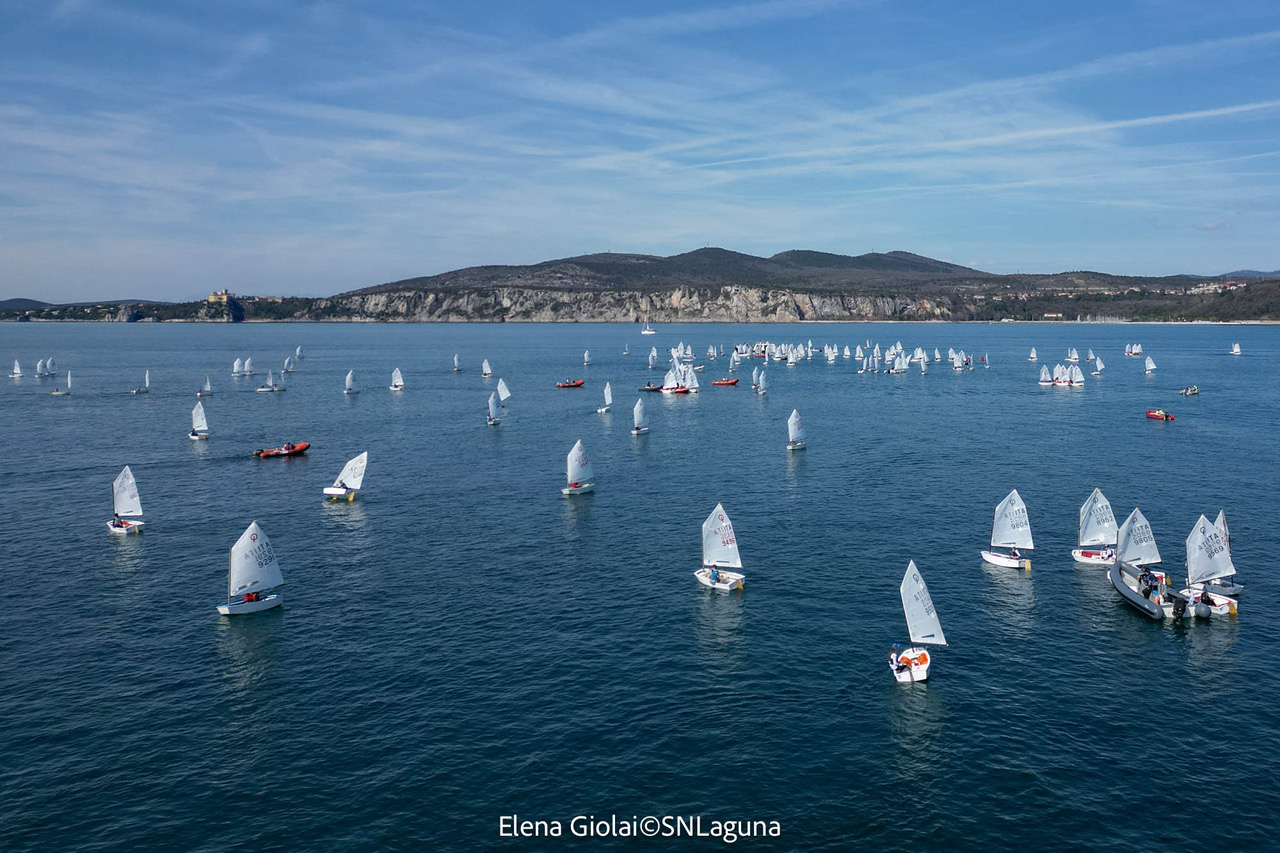 Una giornata magnifica di caldo sole ha inaugurato il primo dei tre giorni previsti per la Selezione Interzonale della classe Optimist, appuntamento che a Duino Aurisina ha richiamato 180 giovanissimi timonieri provenienti dalle Zone FIV assegnate al raggruppamento nord-est e quindi Marche, Emilia Romagna, Veneto e Friuli Venezia Giulia. È stato uno spettacolo vedere tante vele pronte per affrontare le regate, che decideranno i migliori 38 per accedere alle successive selezioni nazionali. La manifestazione è organizzata dalla Società Nautica Laguna in collaborazione con Diporto Nautico Sistiana e Società Nautica Duino 45 Nord, su delega della Federazione Italiana Vela e sta coinvolgendo tantissimi volontari, giudici di regata, mezzi di assistenza per offrire il meglio ai giovanissimi velisti. Il vento termico si è presentato poco dopo l’ora di pranzo e prontamente il Comitato di Regata ha dato la partenza appena la direzione si è stabilizzata con un’intensità che inizialmente è stata sui 5 nodi per arrivare anche agli 11, direzione sud-ovest. La flotta, divisa in due batterie con naturalmente altrettante partenze, ha navigato bene per tutta la regata, che ha visto nelle prime posizioni molti portacolori di società veliche della XIII Zona FIV Friuli Venezia Giulia, conoscitori del campo di regata, ma da sempre tra i migliori timonieri della classe Optimist e non solo. Purtroppo la seconda prova è stata interrotta dopo che la flotta aveva già girato la prima boa di bolina, per un calo repentino del vento, che non ha più permesso ulteriori prove di giornata. L’ordine d’arrivo dell’unica regata conclusa è stato il seguente: per la batteria blu vittoria di Mattia Di Martino (SV Barcola e Grignano), secondo posto di Tommaso Geiger (Società triestina Sport del Mare), terzo di Giovanni Montesano (Sirena Klub Nautico Triestino); prima ragazza la marchigiana Mia Paoletti (CV Portocivitanova). Nella flotta gialla primo Cristian Castellan (Società triestina Sport del Mare), seguito da Matteo Ravaioli (Circolo Velico Ravennate) e Nicolò Santoro (Società Triestina della Vela), quinta e prima delle ragazze Nina Cittar (Società Triestina della Vela).