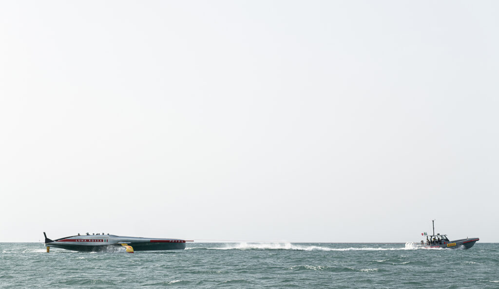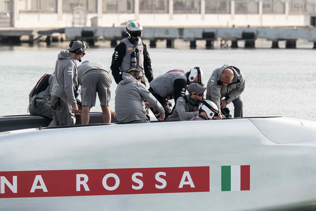 Sono state testate le altezze di marcia e le velocità sono aumentate man mano che cresceva la fiducia, ma un ammaraggio causato da un problema al cavo di traino ha ricordato a tutti che gli AC75 hanno l’abitudine di mordere, e mordere forte. Per Luna Rossa, che utilizza la tradizionale configurazione foil, forse c’era da aspettarselo mentre sperimentavano l’altezza di volo e di sicuro i velisti non vedranno l’ora che arrivi il giorno in cui i veri foil saranno fissati sotto di loro e le vele saranno alzate in alto.