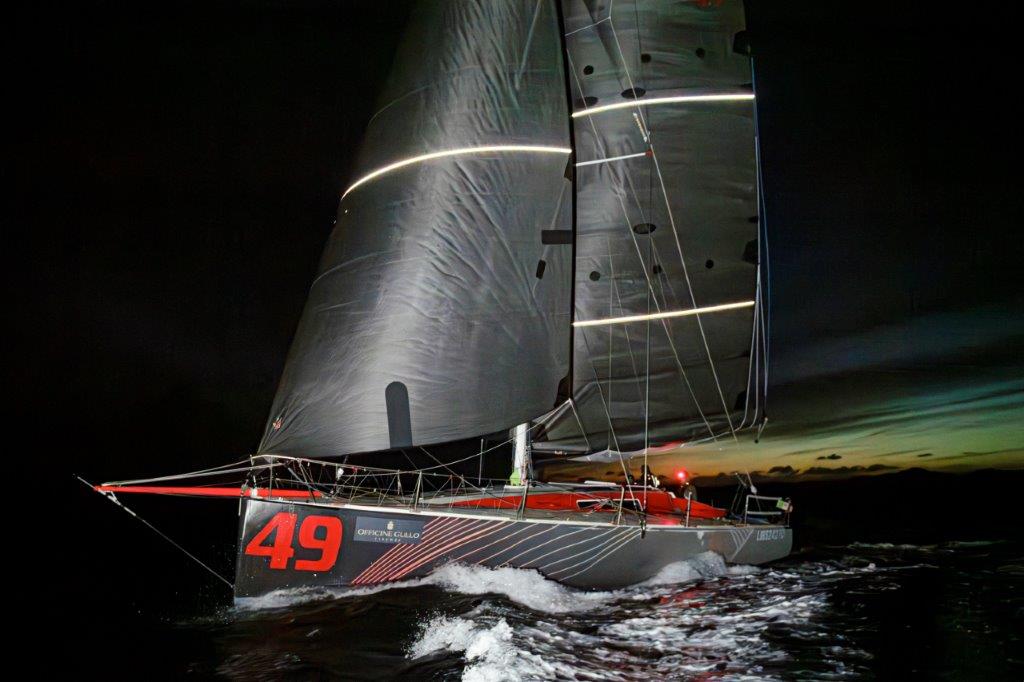 La flotta si dirige verso i Faraglioni di Capri con Lunatika al comando in tempo reale per sole 4 miglia su Vaquita che però appare meglio posizionata per prendere prima il vento da sud, seguono Muttley, Amapola e Pegasus. La prevista rotazione del vento dai quadranti meridionali e sudorientali sta generando una zona di transizione proprio sull’area di navigazione dei concorrenti, che attuano ciascuno la propria specifica strategia per negoziare al meglio questa instabilità.