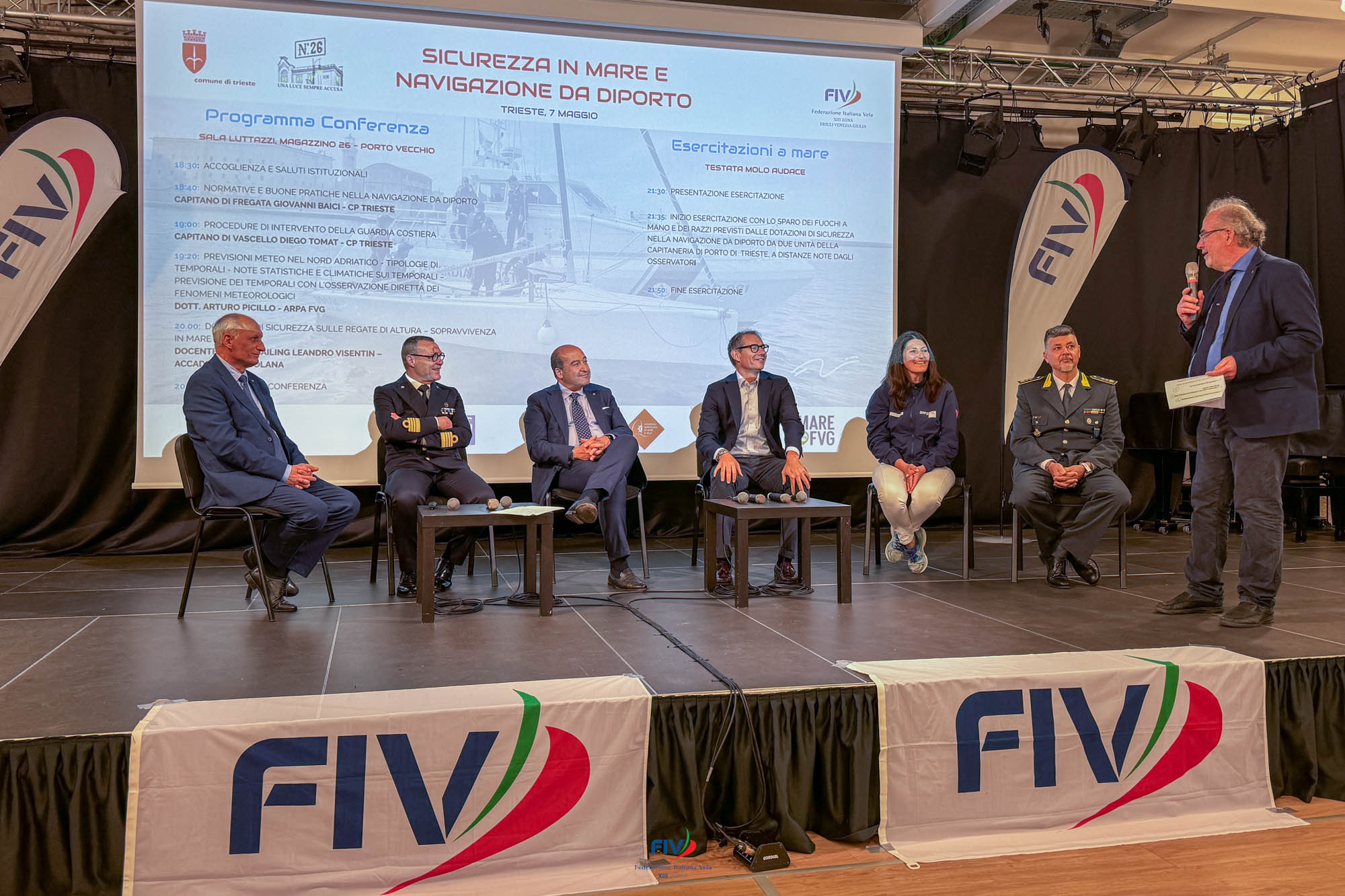 Successo di partecipazione alla Conferenza di martedì 7 maggio con tema “Sicurezza in mare e Nautica da Diporto” organizzata dalla Federazione Italiana Vela XIII Zona Friuli Venezia Giulia e inserita nella rassegna “Una Luce sempre Accesa” presso la Sala Luttazzi, al Magazzino 26 di Porto Vecchio di Trieste. Sala che è stata riempita fino al numero massimo consentito a dimostrazione dell’interesse dei tesserati e dei cittadini verso quest’iniziativa, che proseguirà con altri incontri. Causa maltempo l’esercitazione con sparo dei fuochi a mano e razzi da parte della Capitaneria di Porto di Trieste è stata rinviata ad un’altra occasione.