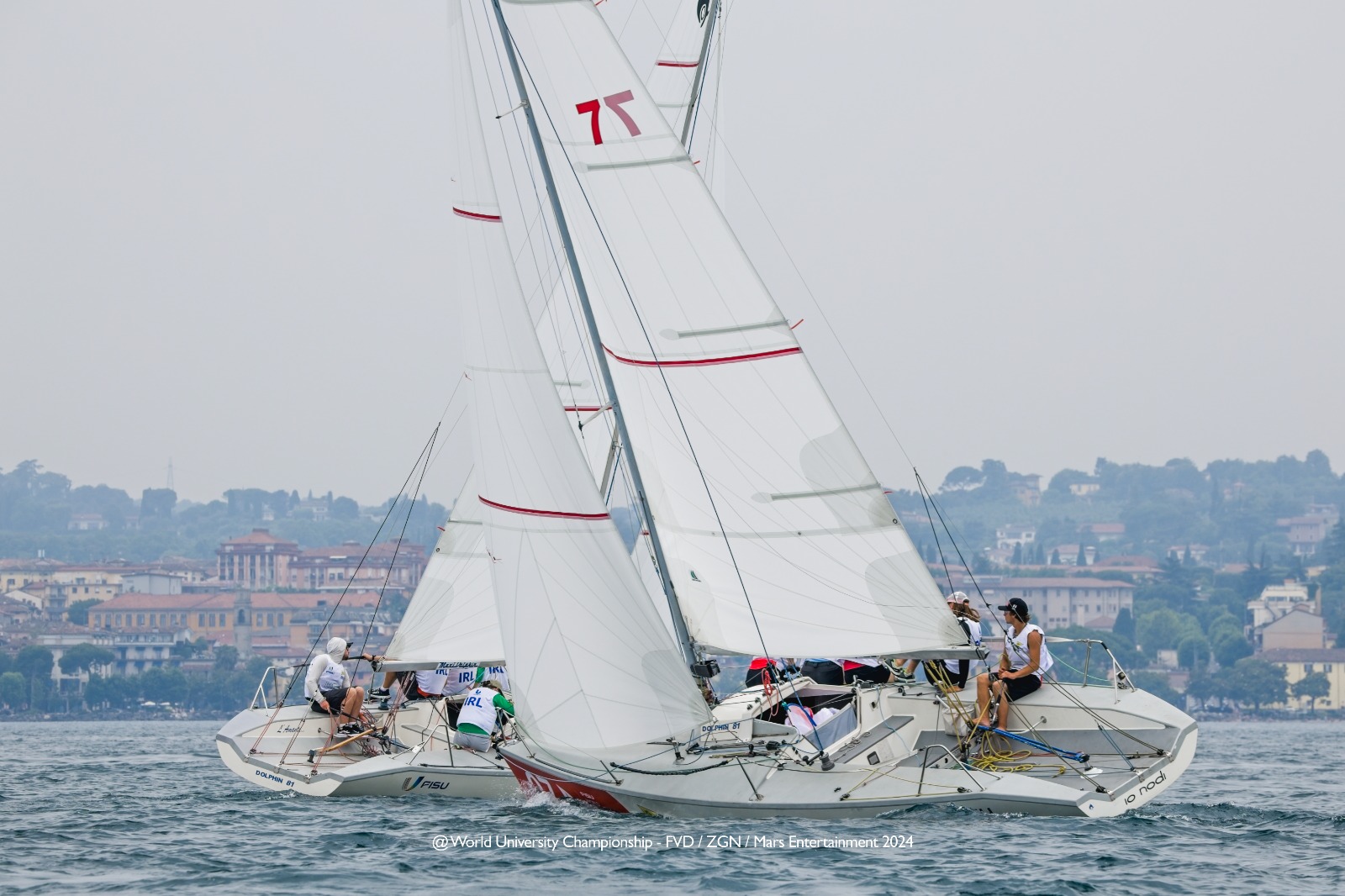 Terminate le qualifiche, a Desenzano, con i partecipanti divisi tra Gold e Silver Fleet, sono iniziate le regate di finale. Domani si incoronerà il nuovo team campione del mondo di vela universitaria.