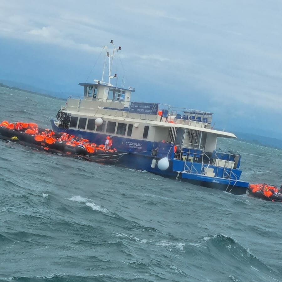 Le 76 persone a bordo, che avevano preso posto sulle zattere di salvataggio, sono state tutte tratte in salvo e non si registrano feriti ma solo tanto spavento tra i passeggeri, in procinto di sbarcare a Grado in sicurezza con i mezzi navali della Guardia Costiera.