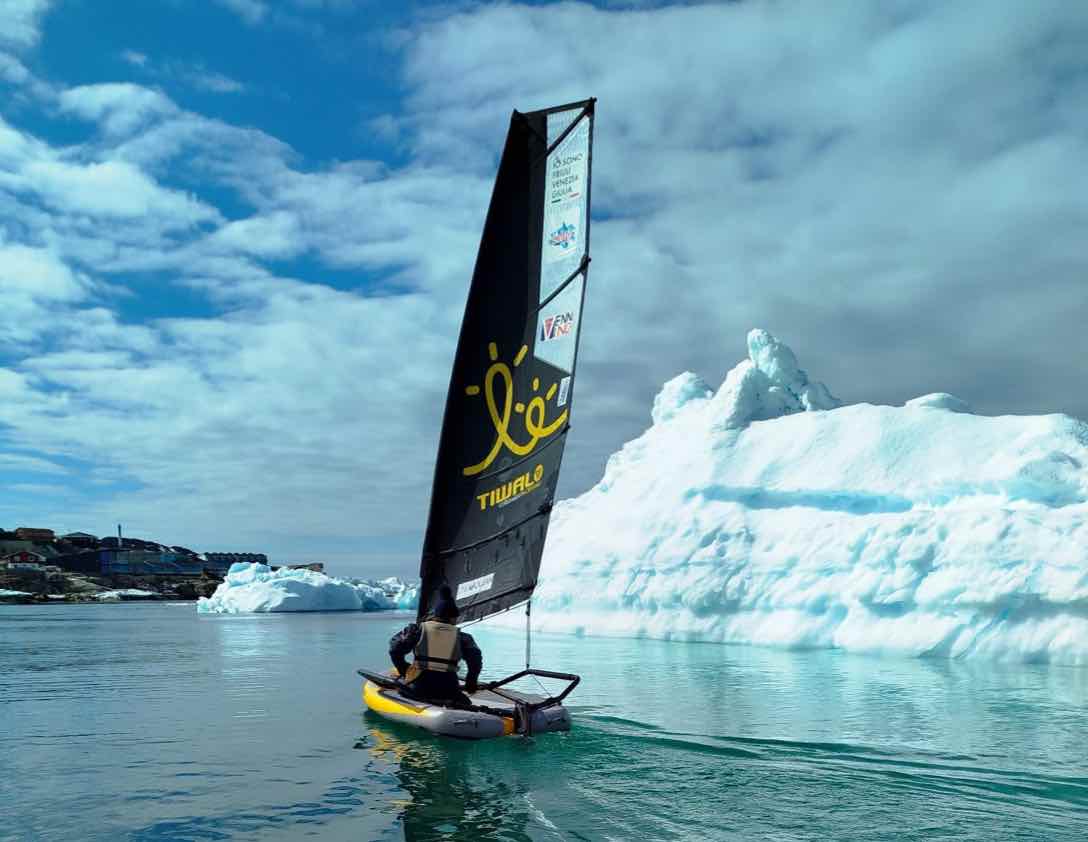 Dopo i primi due giorni di acclimatamento e diversi sopralluoghi lungo la costa anche sotto una fitta nevicata, il 13 giugno il team ha stabilito lo spot ideale dove poter varare le imbarcazioni. Attrezzato il necessario e montate le imbarcazioni in circa 40 minuti, gli equipaggi sono scesi in acqua. Temperatura esterna ca 4°/6°, temperatura dell’acqua 2°. Il format della navigazione prevedeva uno scontro in match race (uno contro uno) dove le boe, in questo caso, sono state sostituite dagli iceberg presenti. Il vento era leggero ma le correnti importanti. La linea di partenza è stata impostata tra un iceberg nei pressi della costa e la chiesetta della città a poche decine di metri dal mare. Procedura di partenza stabilita in 2 minuti e percorso svolto sulla rotta: bolina, lasco, lasco da percorrersi due volte. Il primo round ha visto la vittoria della nota youtuber (canale 25nodi) Elisabetta Maffei, nei confronti di Manuel Vlacich. Il format poi prevedeva lo scontro diretto tra il perdente del primo round con l’altro ideatore Franco Deganutti e, in questo caso, il meglio l’ha avuto Manuel