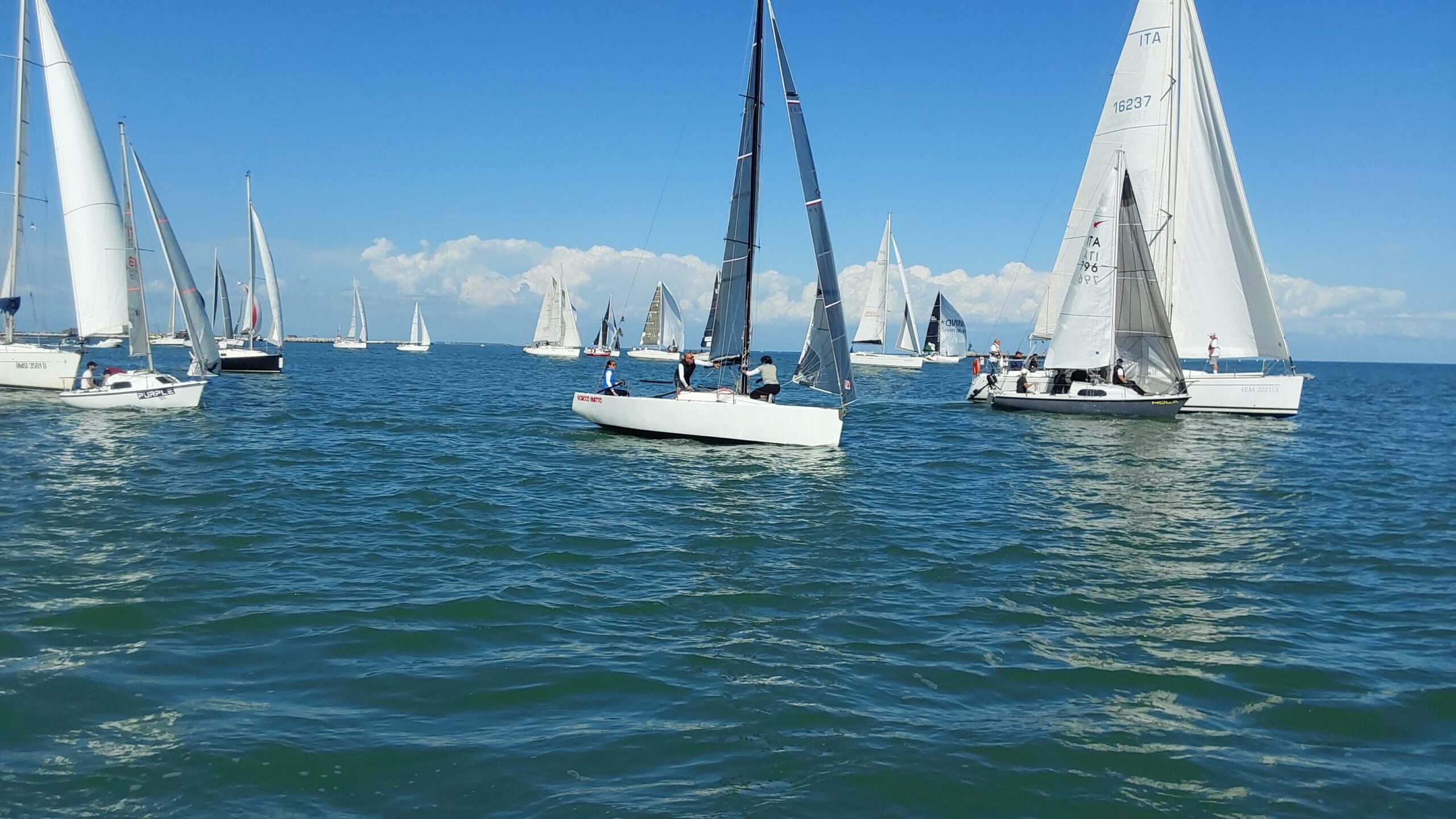 La vigilia del sabato è preceduta dall’incognita meteo, che prevede il passaggio di un rapido impulso perturbato proprio a ridosso dell’orario della regata. Come spesso accade però la teoria può essere diversa dalla pratica e così la giornata regala vento da Sud Ovest con mare piatto che consente a tutti gli equipaggi di potersi divertire esprimendo al massimo le proprie abilità. Alle 14:00 sono trentaquattro le barche sulla linea di partenza, suddivise in tre raggruppamenti: 10 imbarcazioni iscritte in classe regata, 16 a vele bianche ed 8 in classe Meteor.