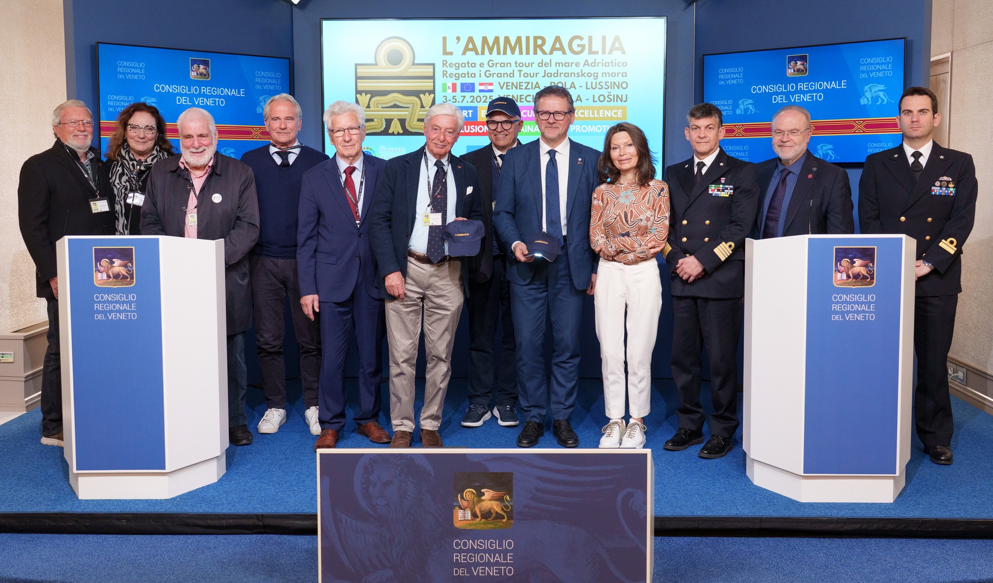 È stata presentata questa mattina nella prestigiosa sede del Consiglio Regionale del Veneto a Palazzo Ferro Fini, la prima edizione de L’Ammiraglia – Regata Gran Tour del Mare, l’iniziativa velica internazionale che dal 3 al 5 luglio unirà idealmente e fisicamente le due sponde dell’Adriatico, da Venezia a Lussinpiccolo passando per Pola, in omaggio alla figura leggendaria dell’Ammiraglio Agostino “Tino” Straulino.