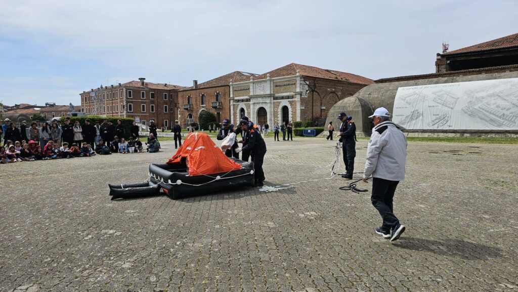Le attività non si sono limitate alla teoria. A bordo della motovedetta CP 833, i giovani hanno assistito a dimostrazioni pratiche di recupero uomo a mare, uso di segnali fumogeni e apertura della zattera di salvataggio. L’Autorità di Sistema Portuale ha proposto un laboratorio educativo multimediale, PORT-EDUCATION LAB, per raccontare il mondo portuale e le sue professioni, accompagnato dalla presentazione dell’app vePorto e del museo virtuale dei porti di Venezia e Chioggia. La Lega Navale Italiana ha invece coinvolto gli studenti nell’apprendimento dei principali nodi marinareschi.